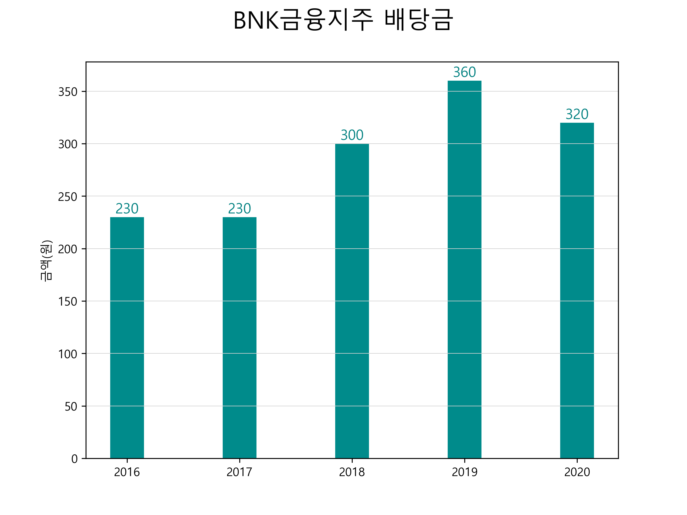 | 배당금 | 230 | 230 | 300 | 360 | 320 |
