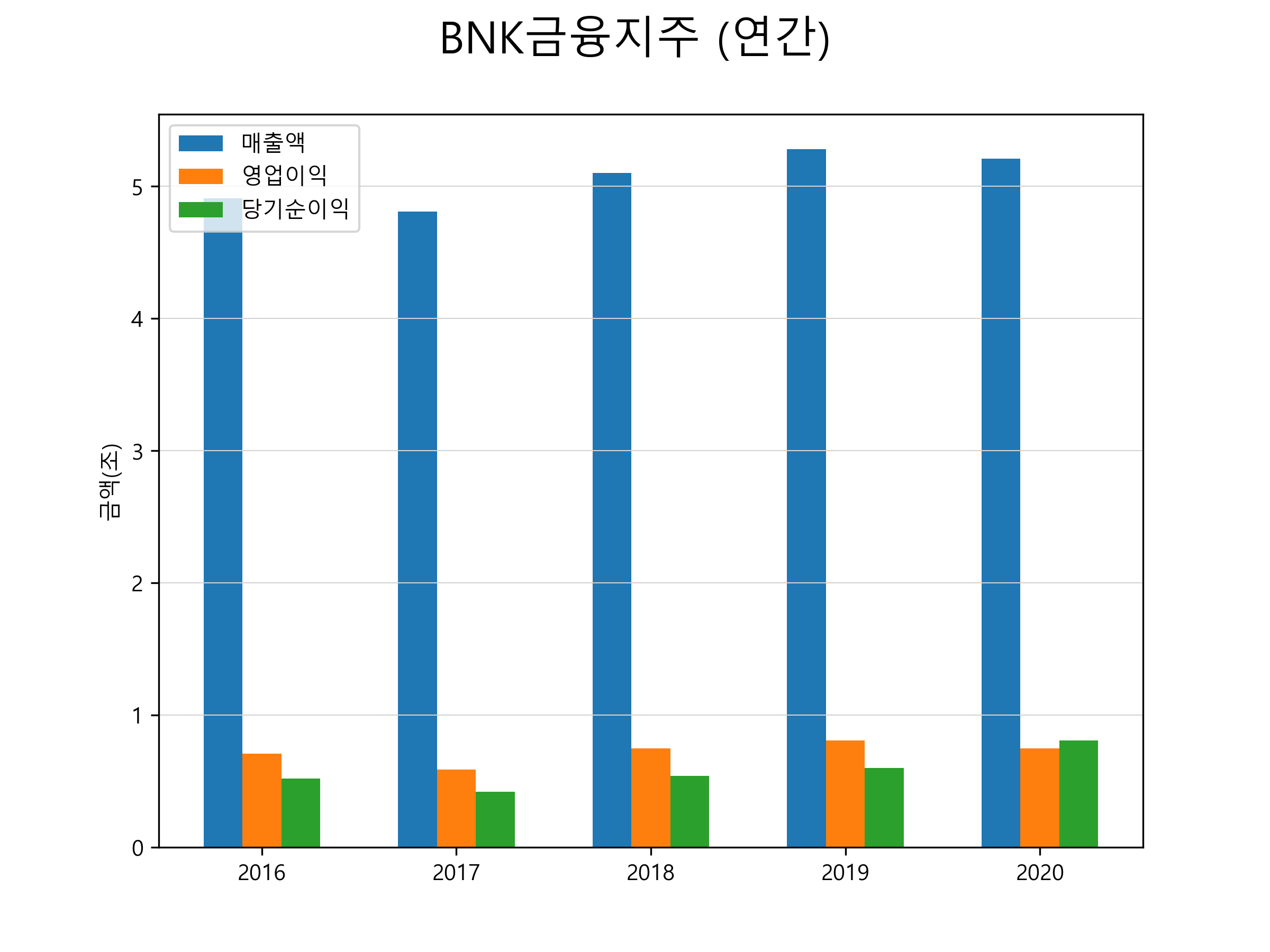 | 당기순이익 | 5181억 | 4250억 | 5381억 | 5989억 | 8069억 |