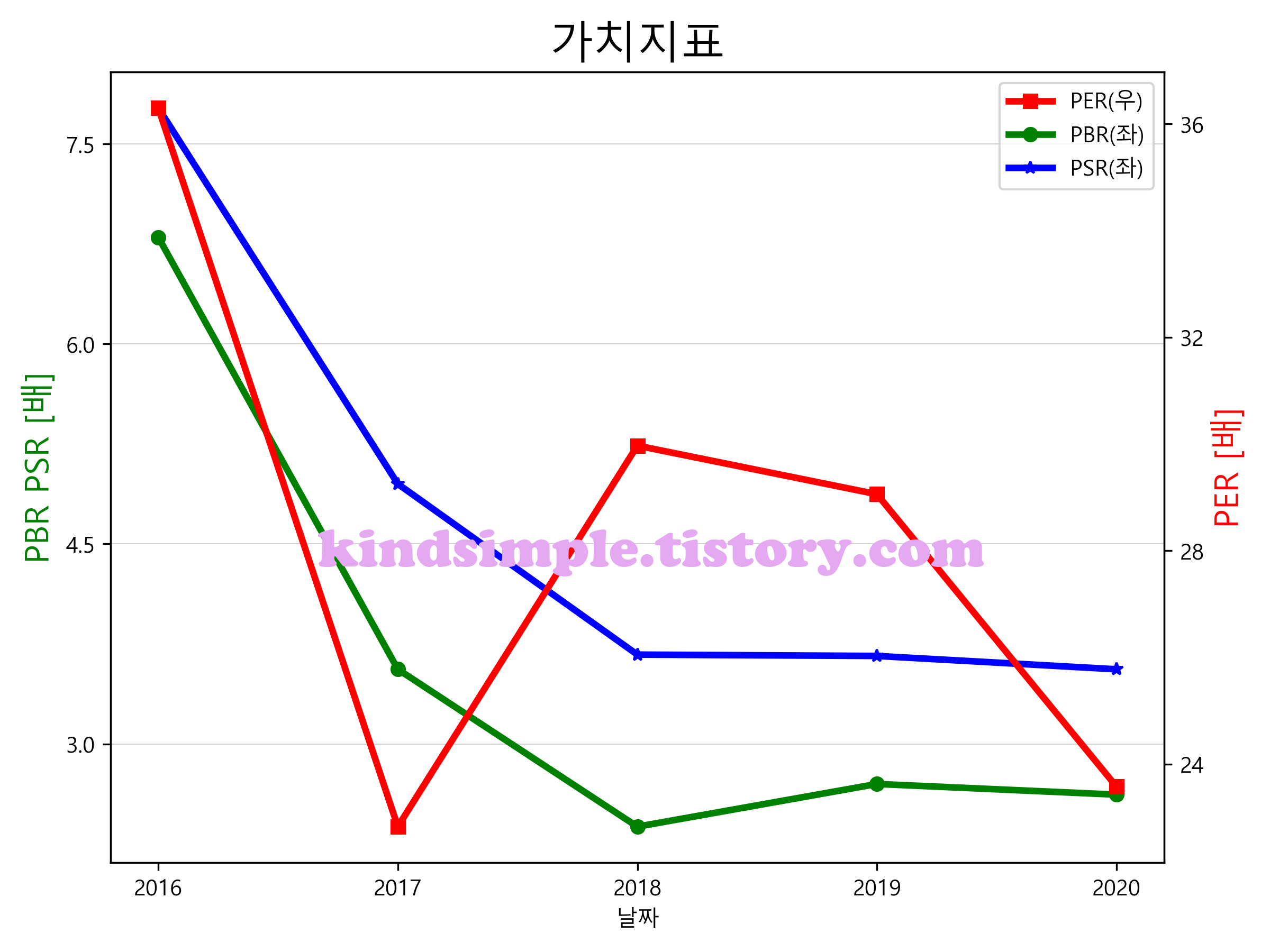 - PER : 26.78배, 동일업종 PER : 11.67배