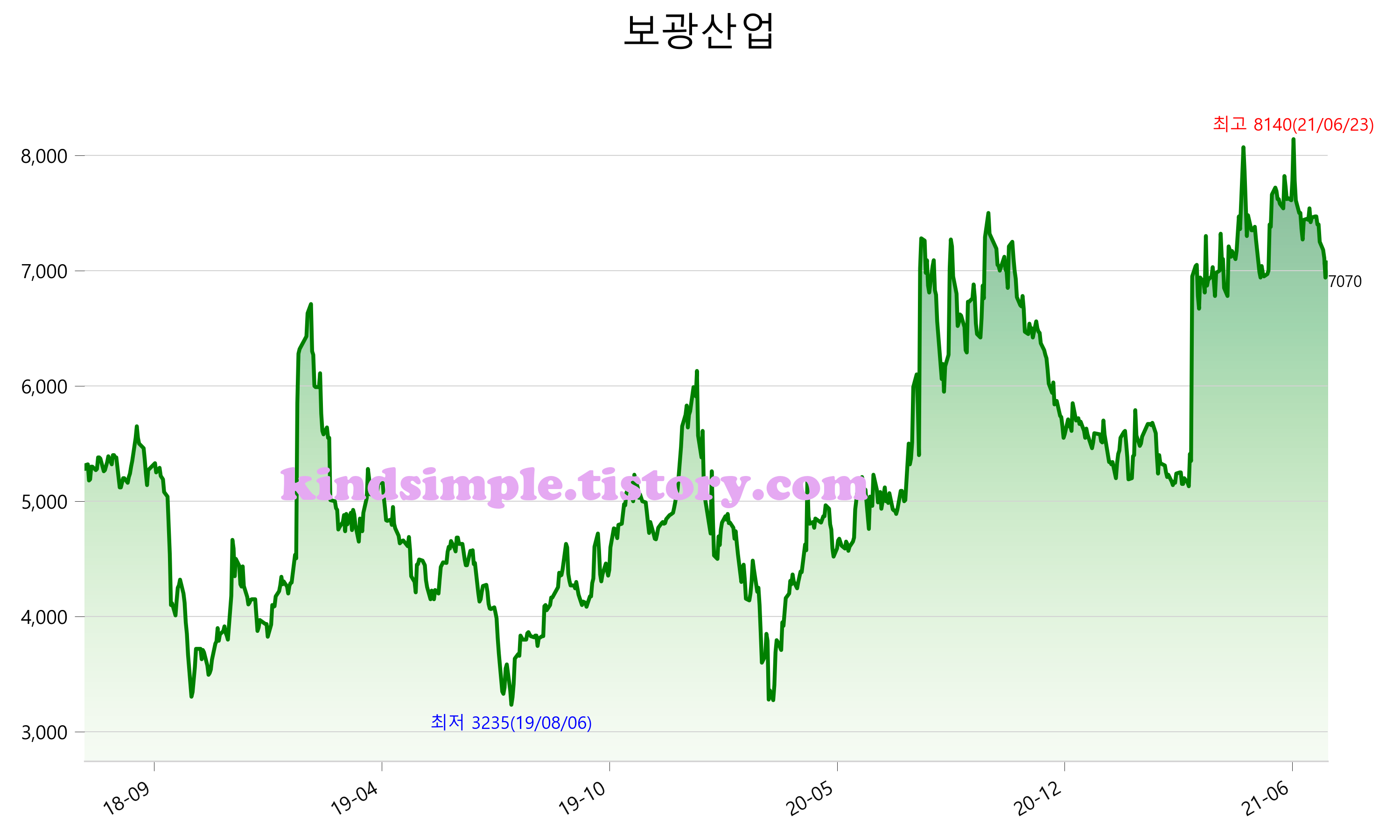 7월 25일 기준 주가는 7,070원 입니다. 아래는 최근 3년간의 주가흐름입니다.