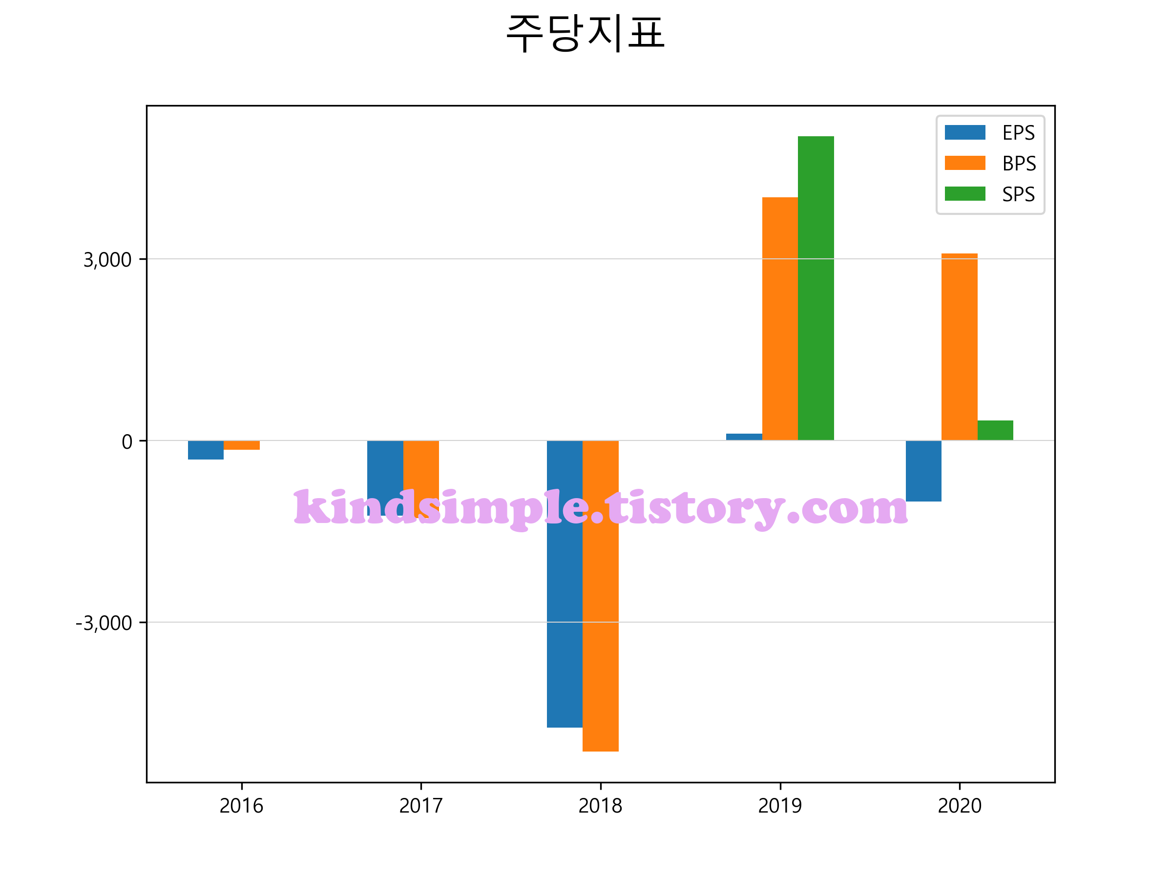 브릿지바이오의 EPS, BPS, SPS입니다.