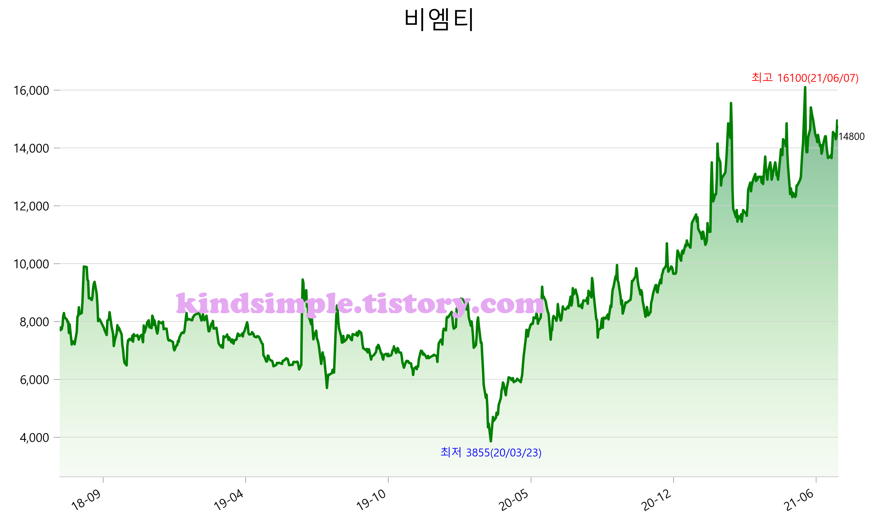 7월 25일 기준 주가는 14,800원 입니다. 아래는 최근 3년간의 주가흐름입니다.