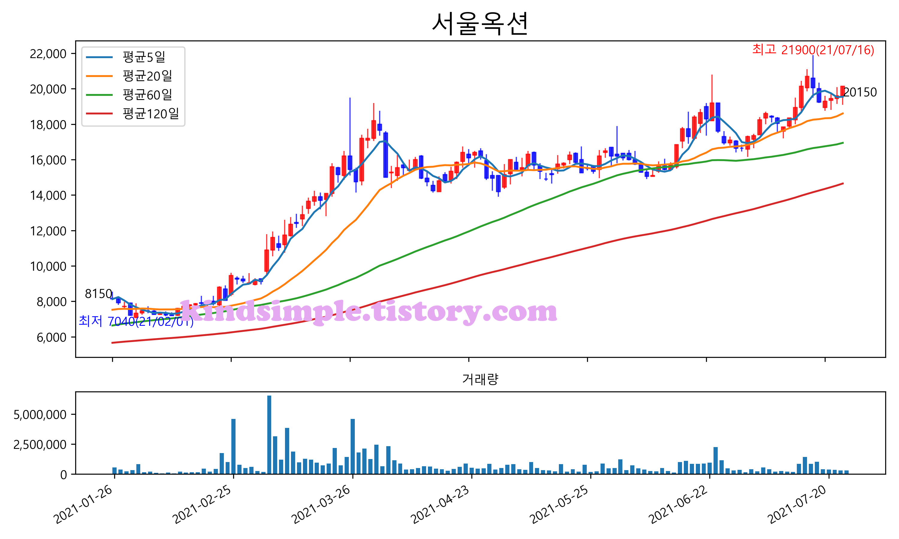최근 6개월간 캔들차트 및 이동평균선입니다.