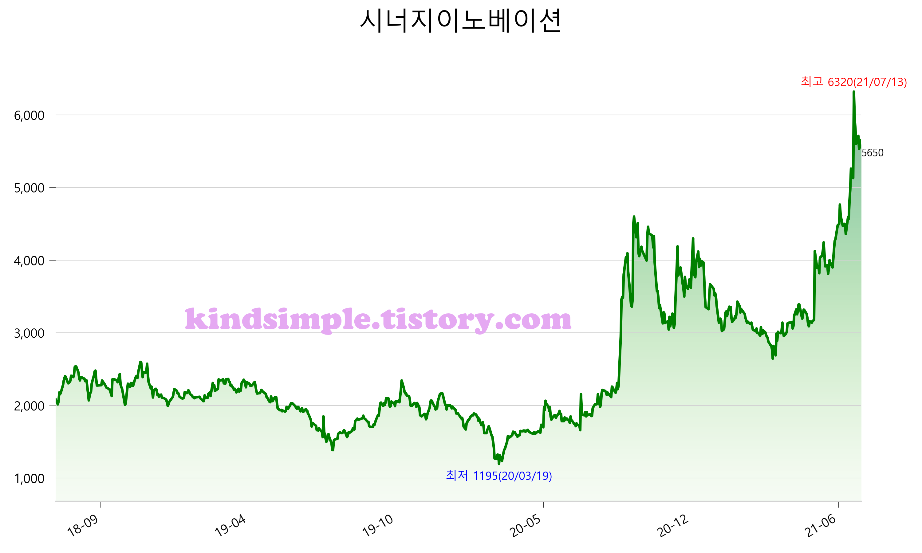 52주 최고가는 6,320원(2021-07-13), 52주 최저가는 1,980원(2020-08-03)으로 52주간 변동률은 180.4% 입니다.