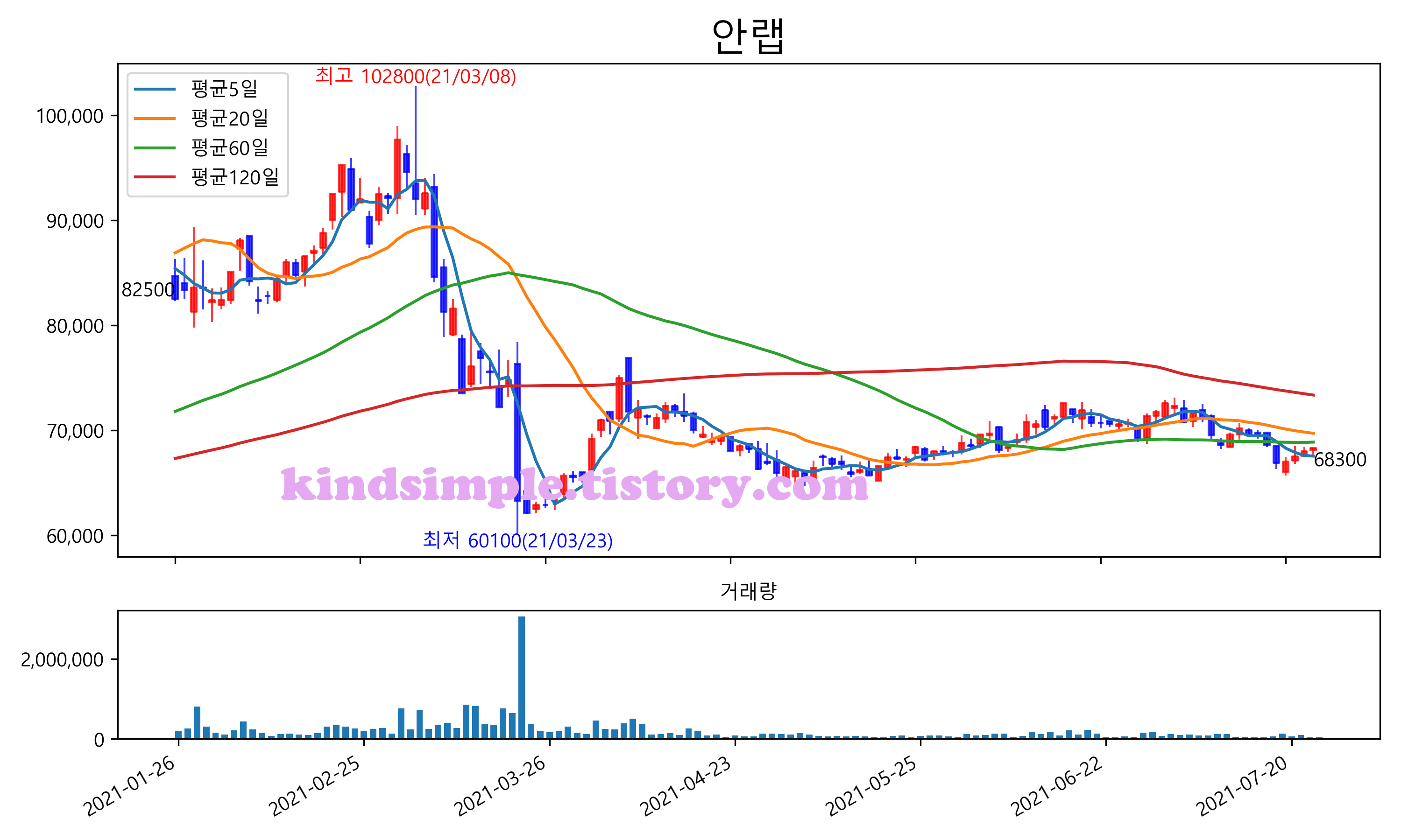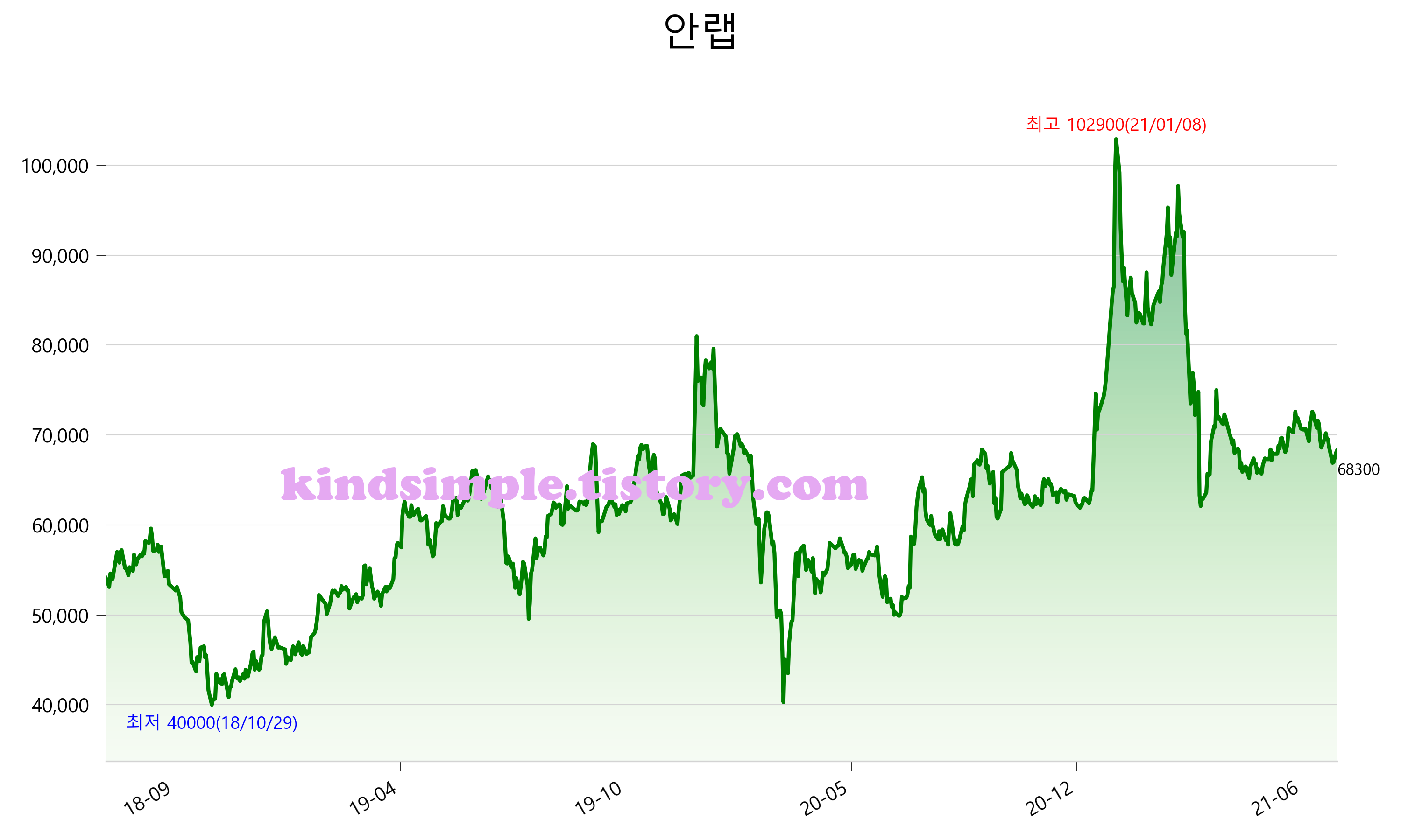 7월 25일 기준 주가는 68,300원 입니다. 아래는 최근 3년간의 주가흐름입니다.