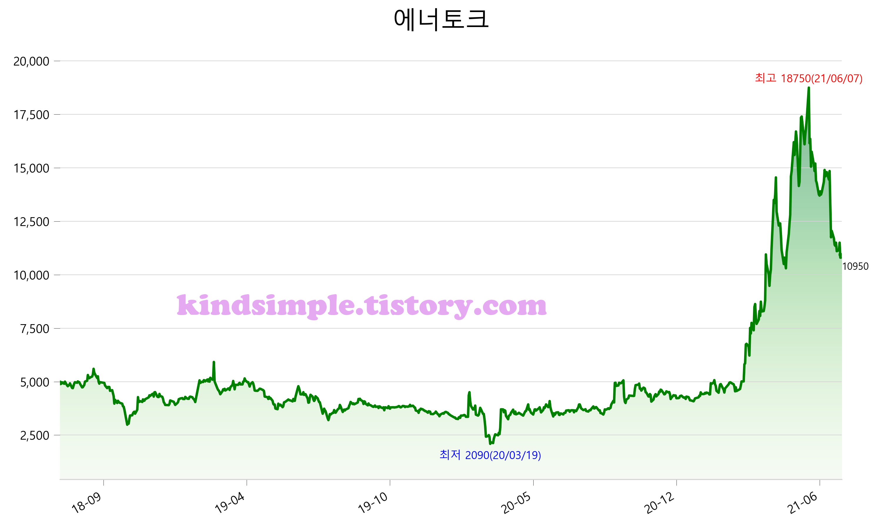 52주 최고가는 18,750원(2021-06-07), 52주 최저가는 3,460원(2020-08-24)으로 52주간 변동률은 198.4% 입니다.