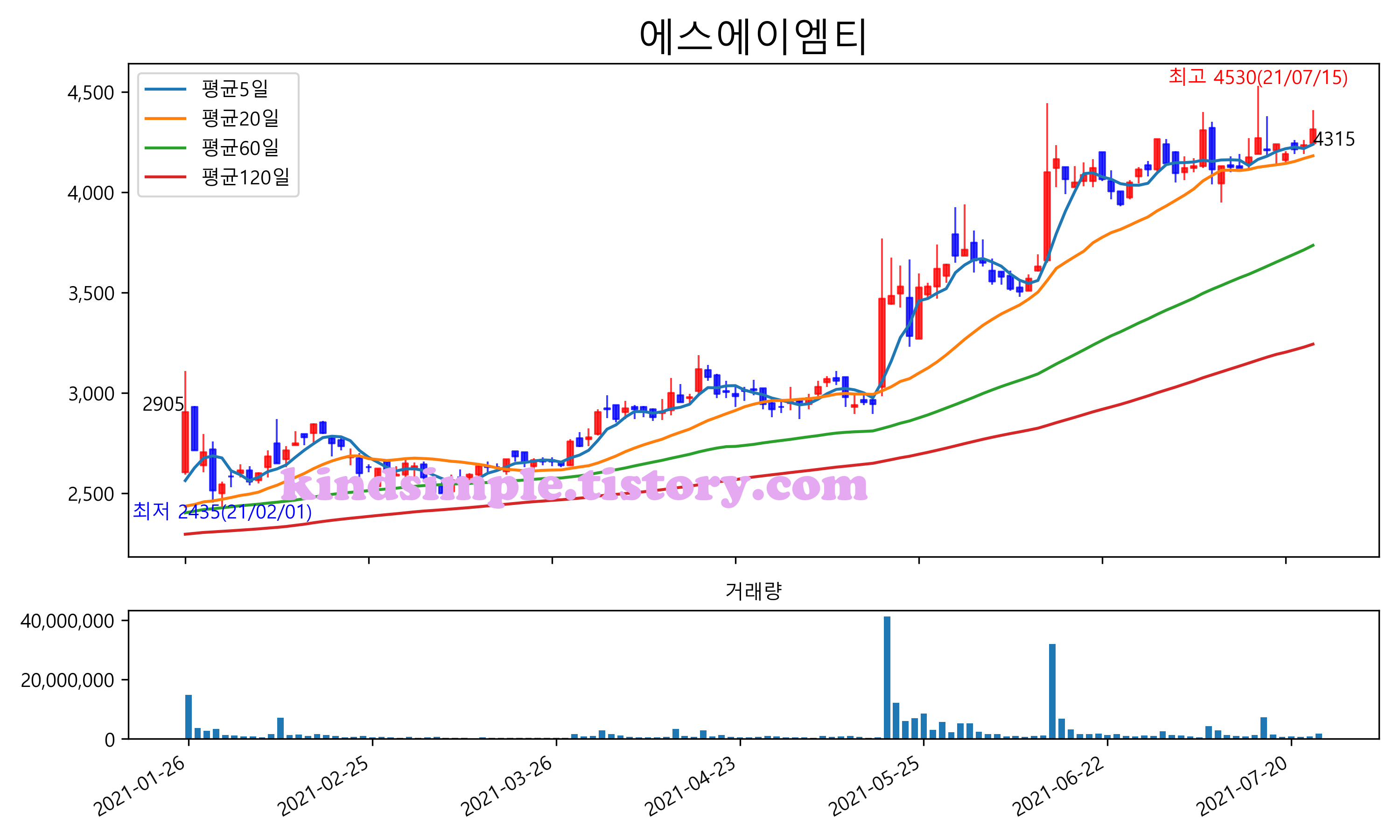 7월 25일 기준 주가는 4,315원 입니다. 아래는 최근 3년간의 주가흐름입니다.