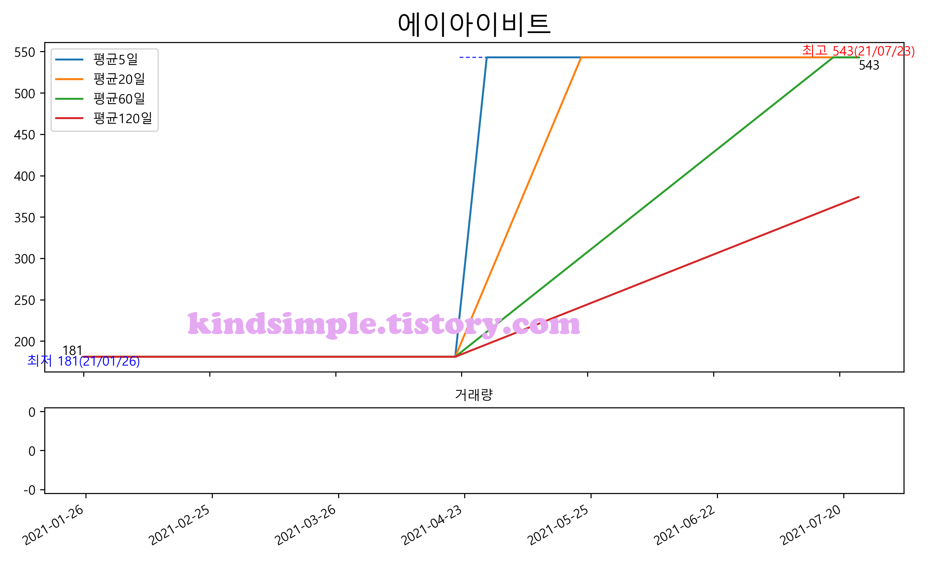 52주 최고가는 543원(2021-07-23), 52주 최저가는 181원(2021-01-26)으로 52주간 변동률은 200.0% 입니다.