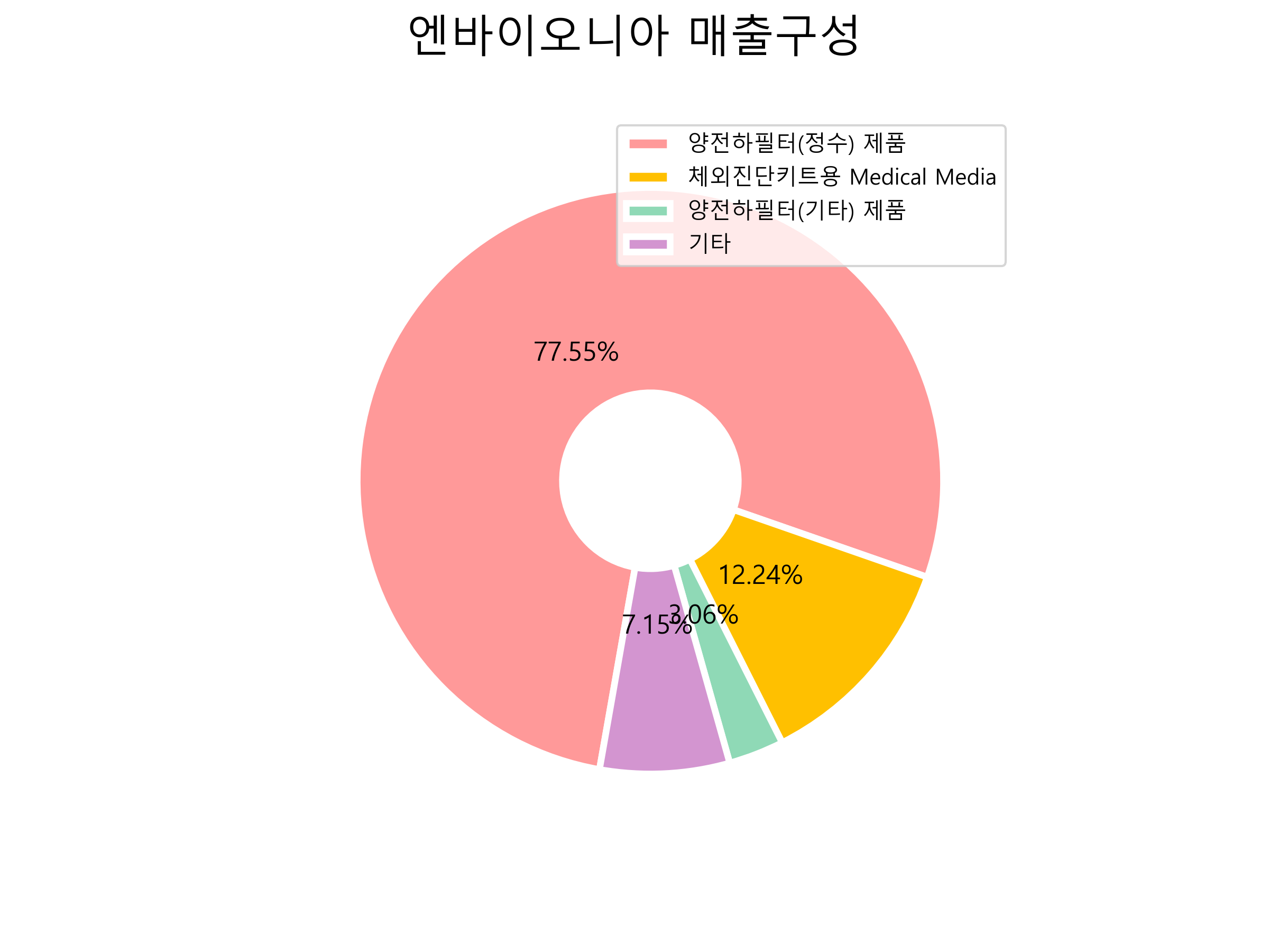 - 양전하필터(정수) 제품은 매출액 중 76.04% 로 큰 비중을 차지함.