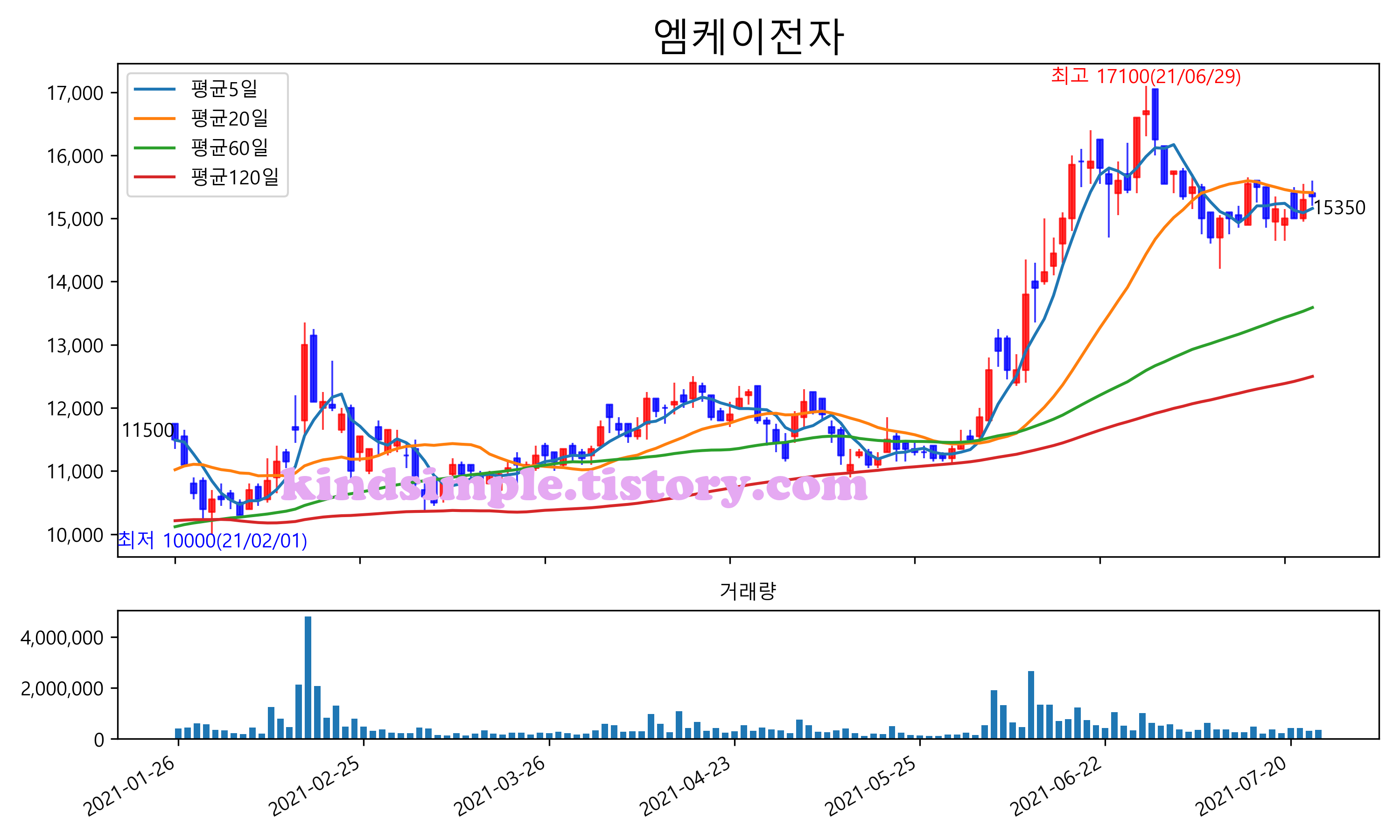 최근 6개월간 캔들차트 및 이동평균선입니다.
