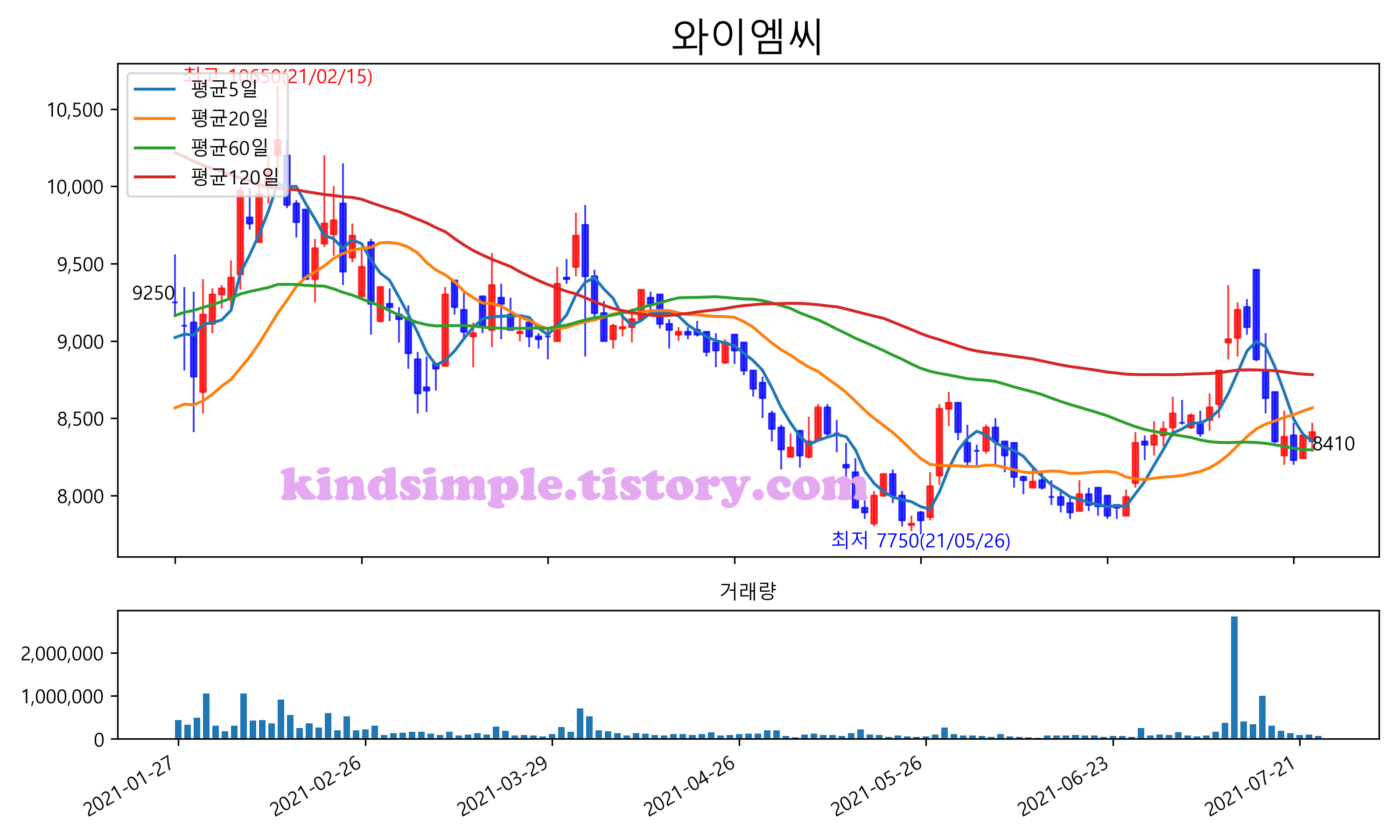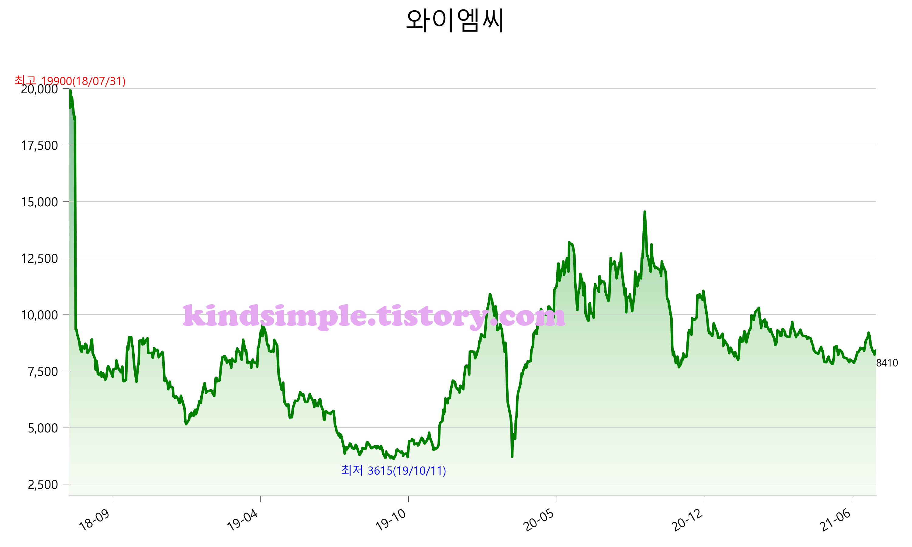 7월 26일 기준 주가는 8,410원 입니다. 아래는 최근 3년간의 주가흐름입니다.