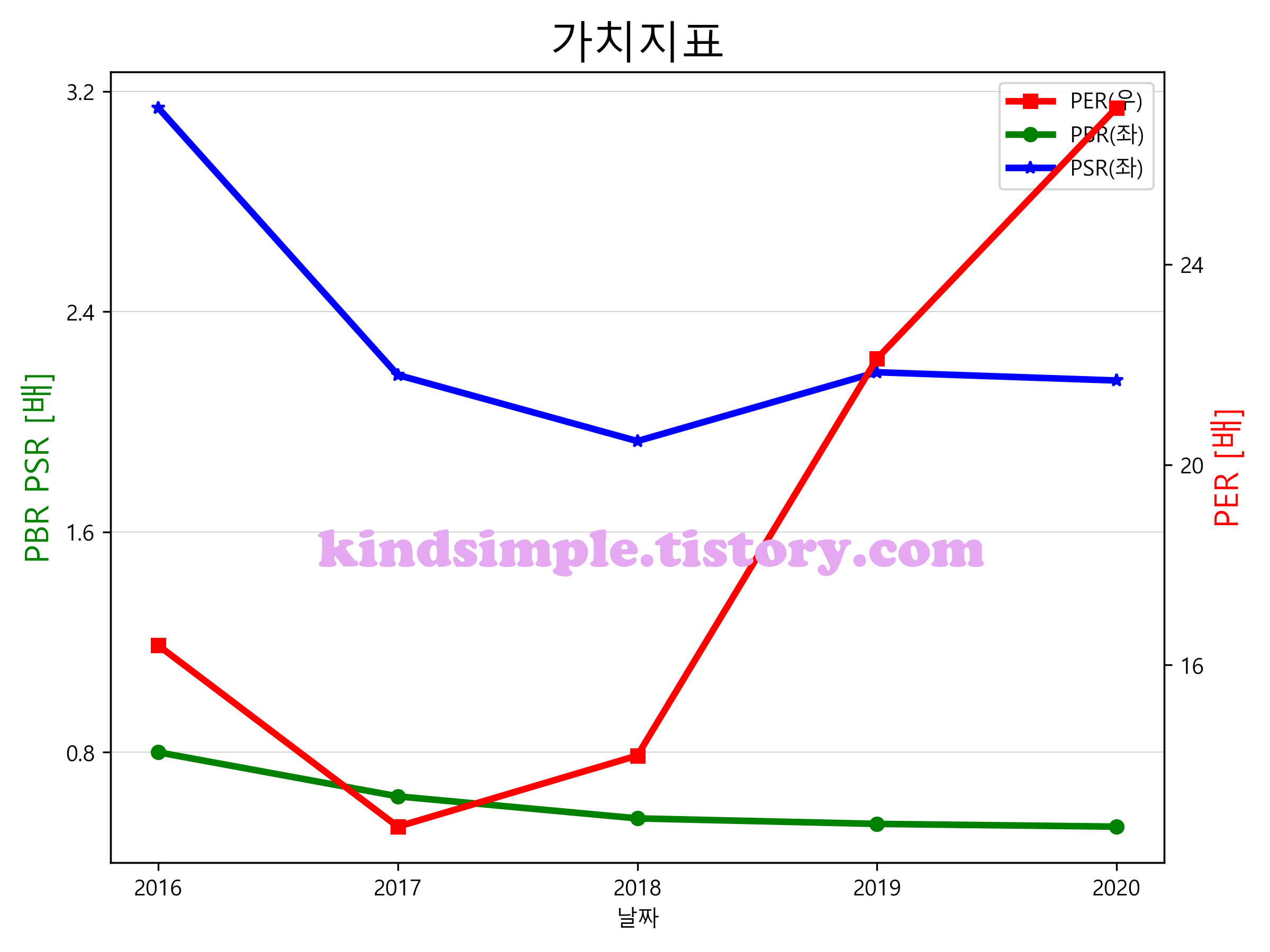 와토스코리아의 PER, PBR, PSR입니다.