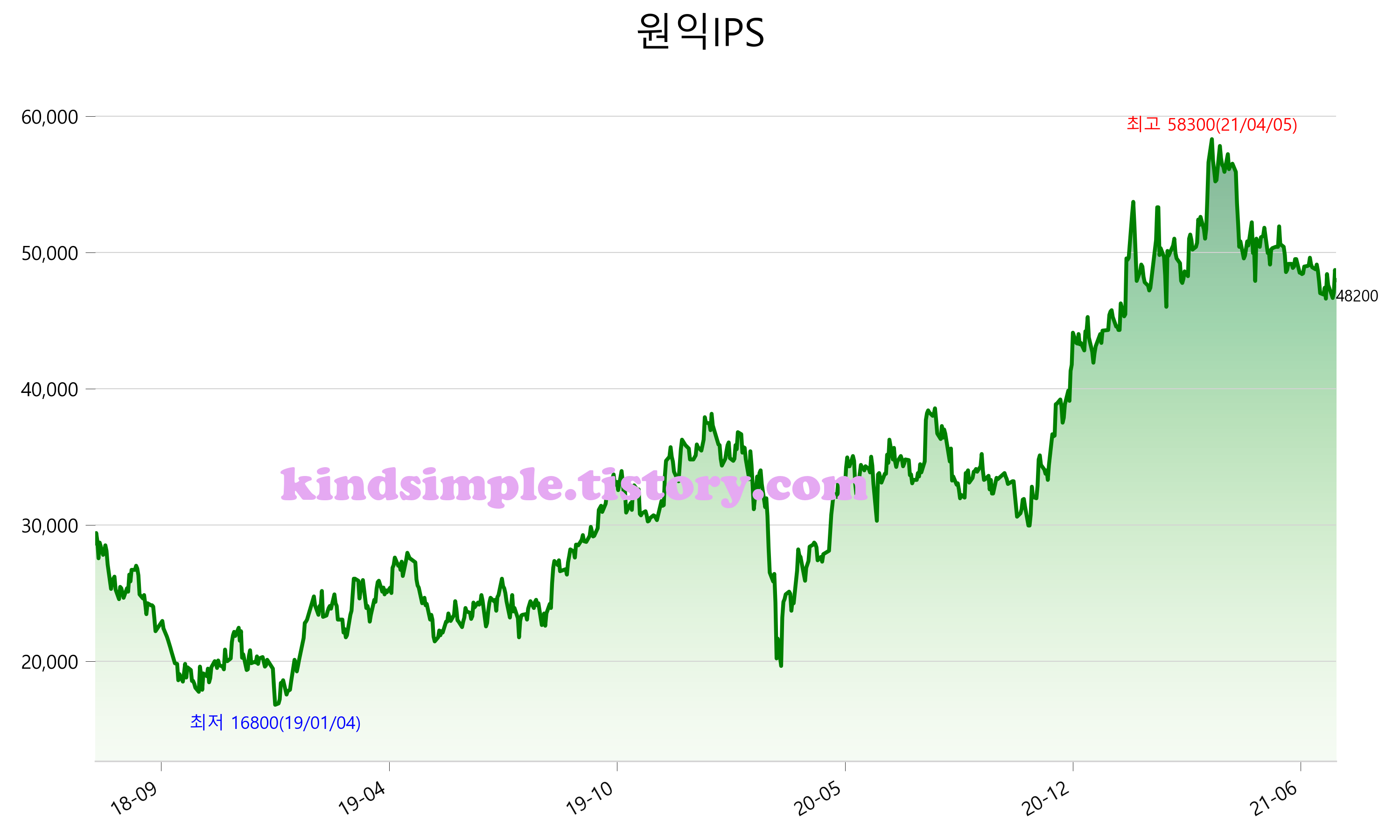 7월 26일 기준 주가는 48,200원 입니다. 아래는 최근 3년간의 주가흐름입니다.