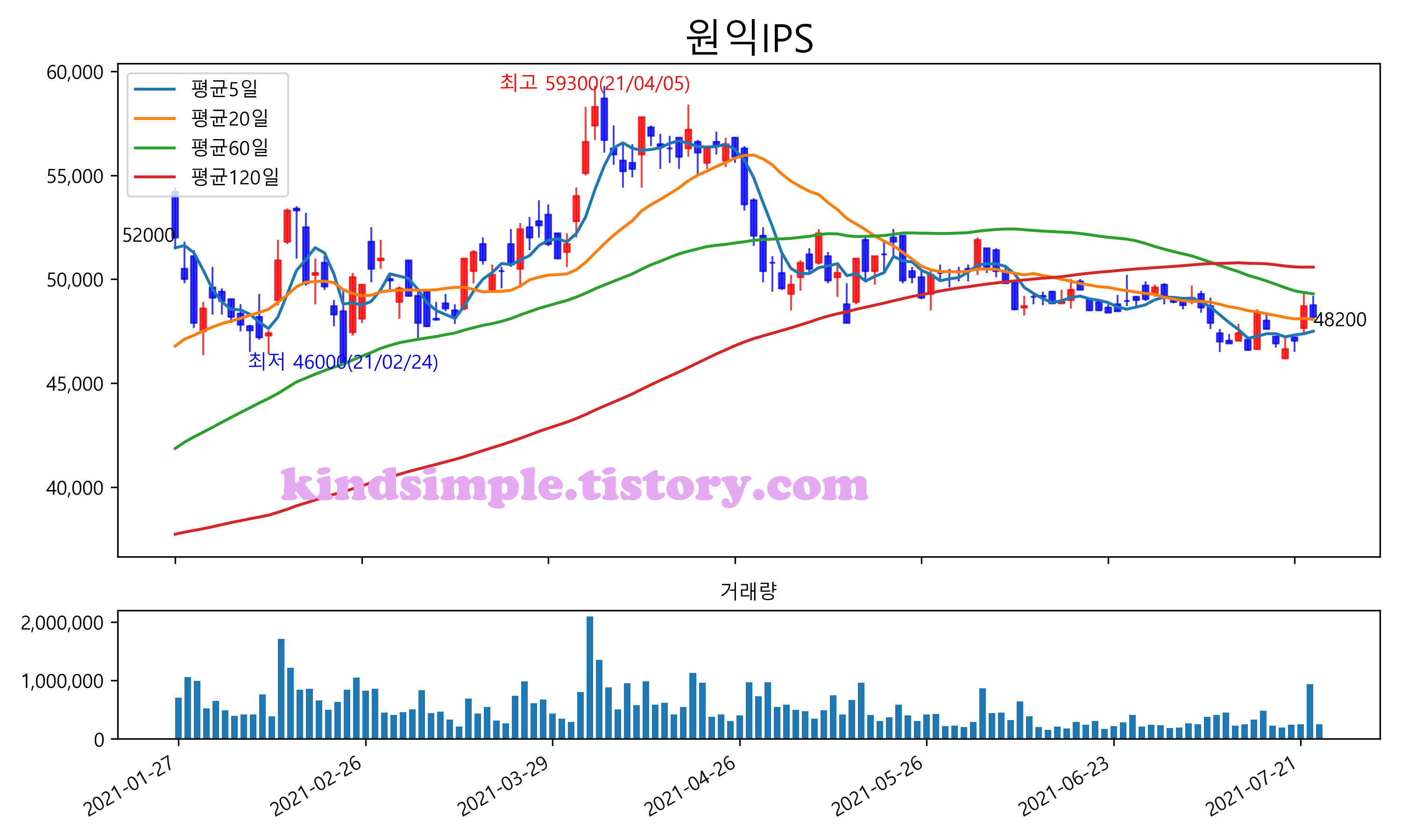 최근 6개월간 캔들차트 및 이동평균선입니다.