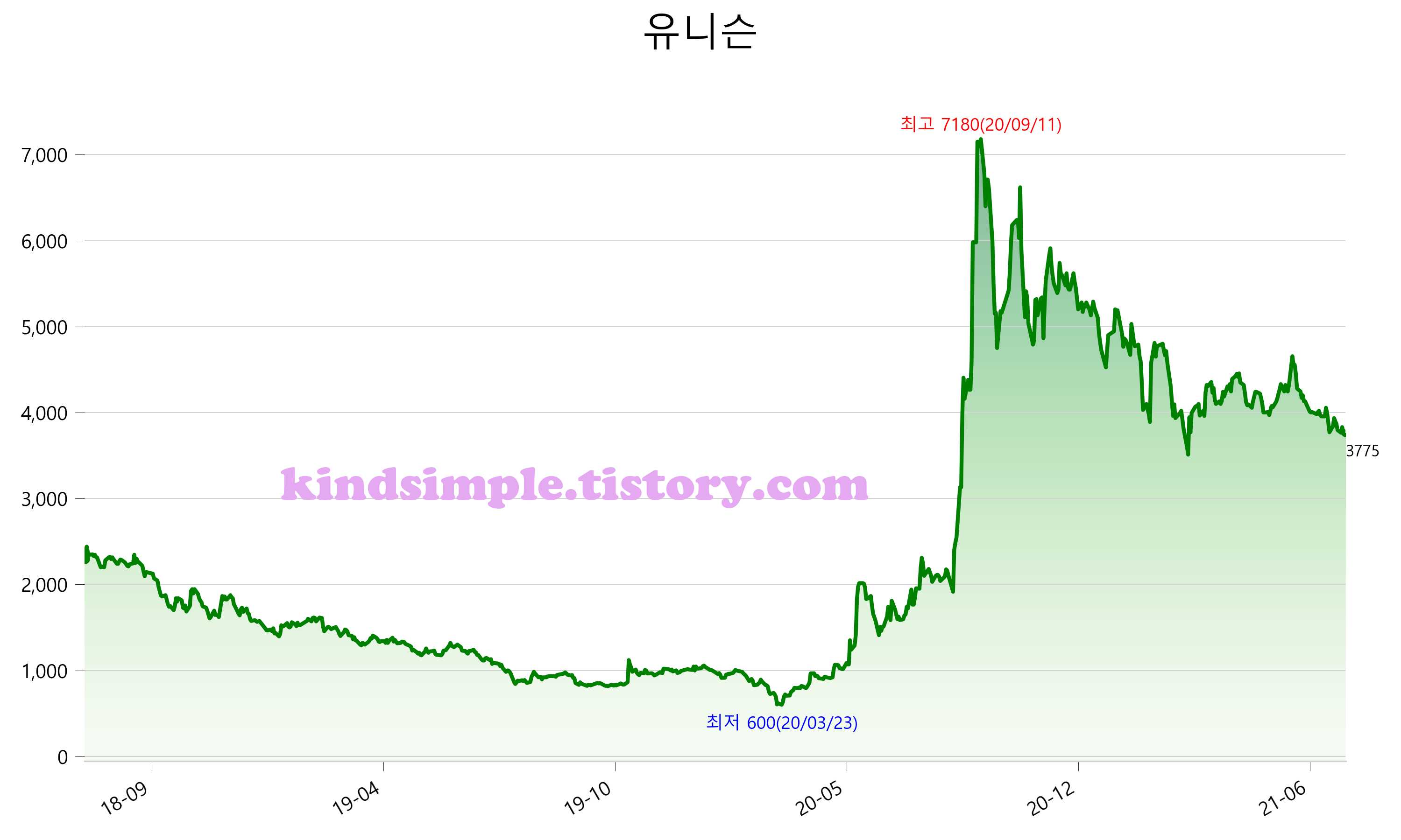 7월 26일 기준 주가는 3,775원 입니다. 아래는 최근 3년간의 주가흐름입니다.