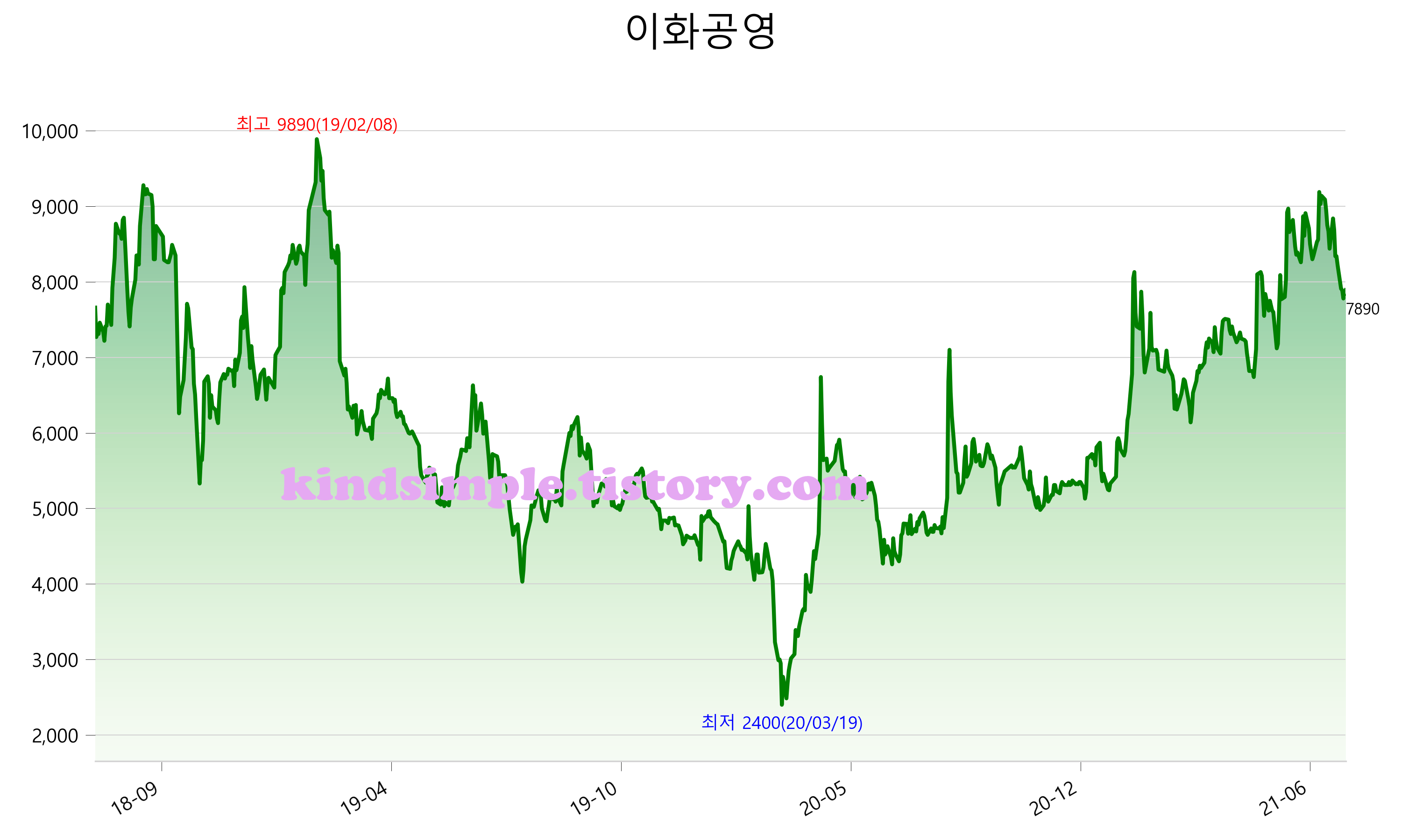 7월 26일 기준 주가는 7,890원 입니다. 아래는 최근 3년간의 주가흐름입니다.