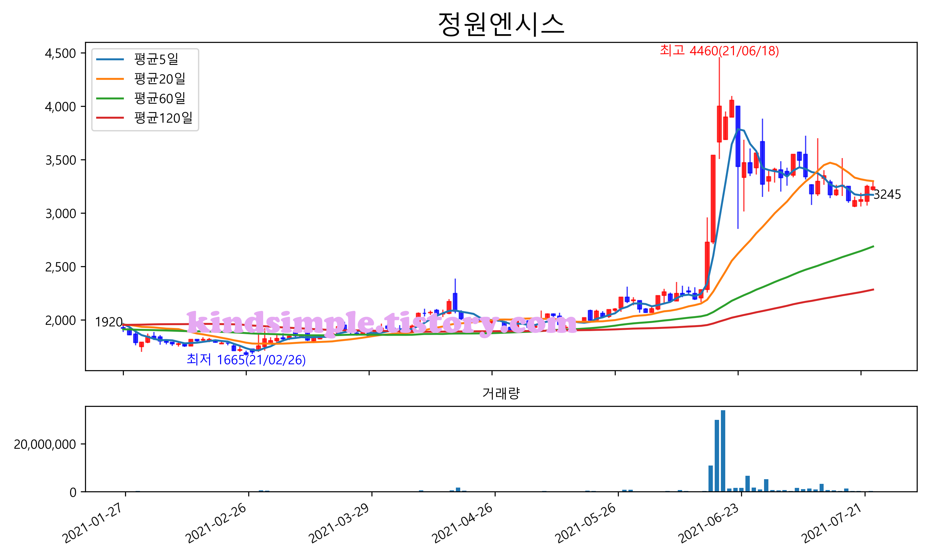 최근 6개월간 캔들차트 및 이동평균선입니다.