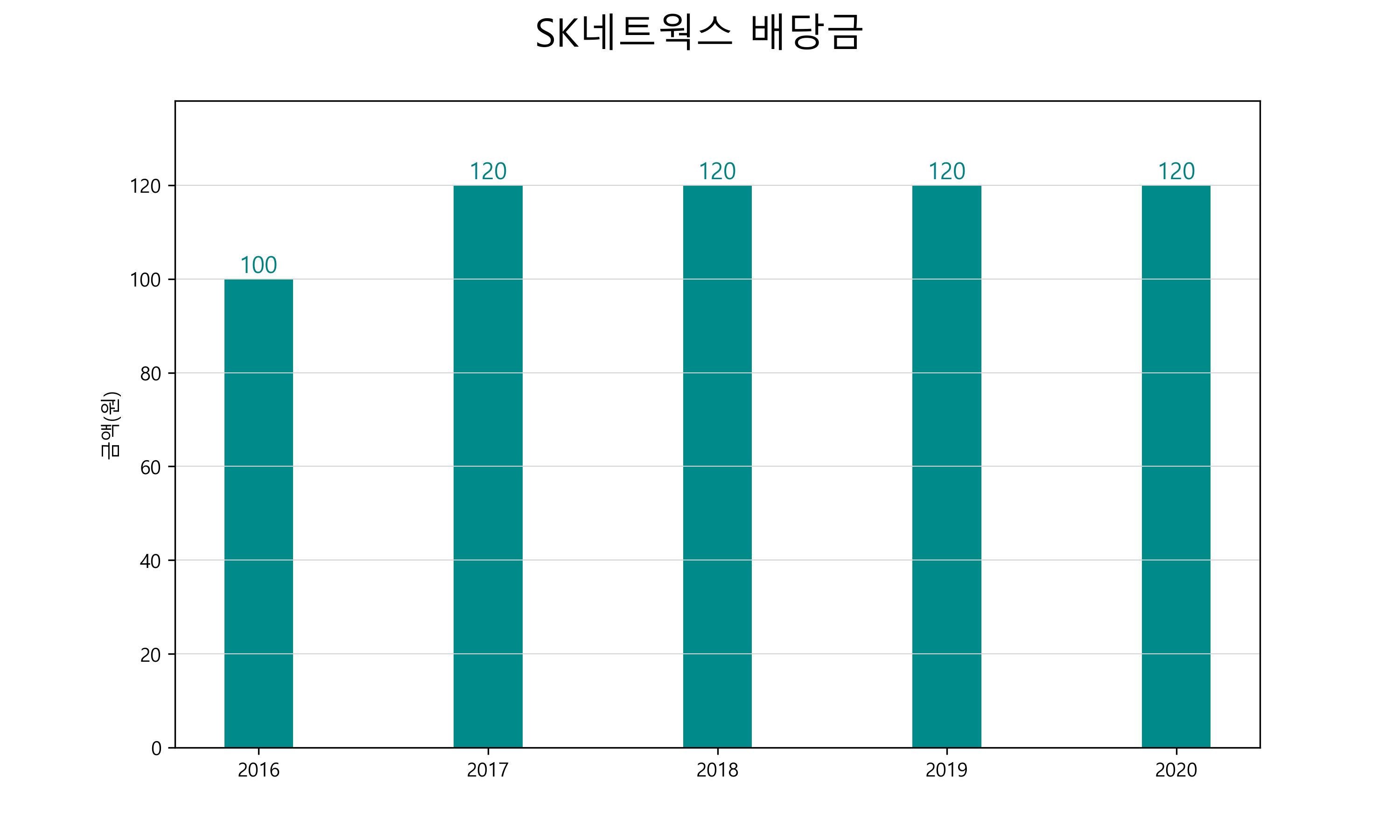 | 배당금 | 100 | 120 | 120 | 120 | 120 |