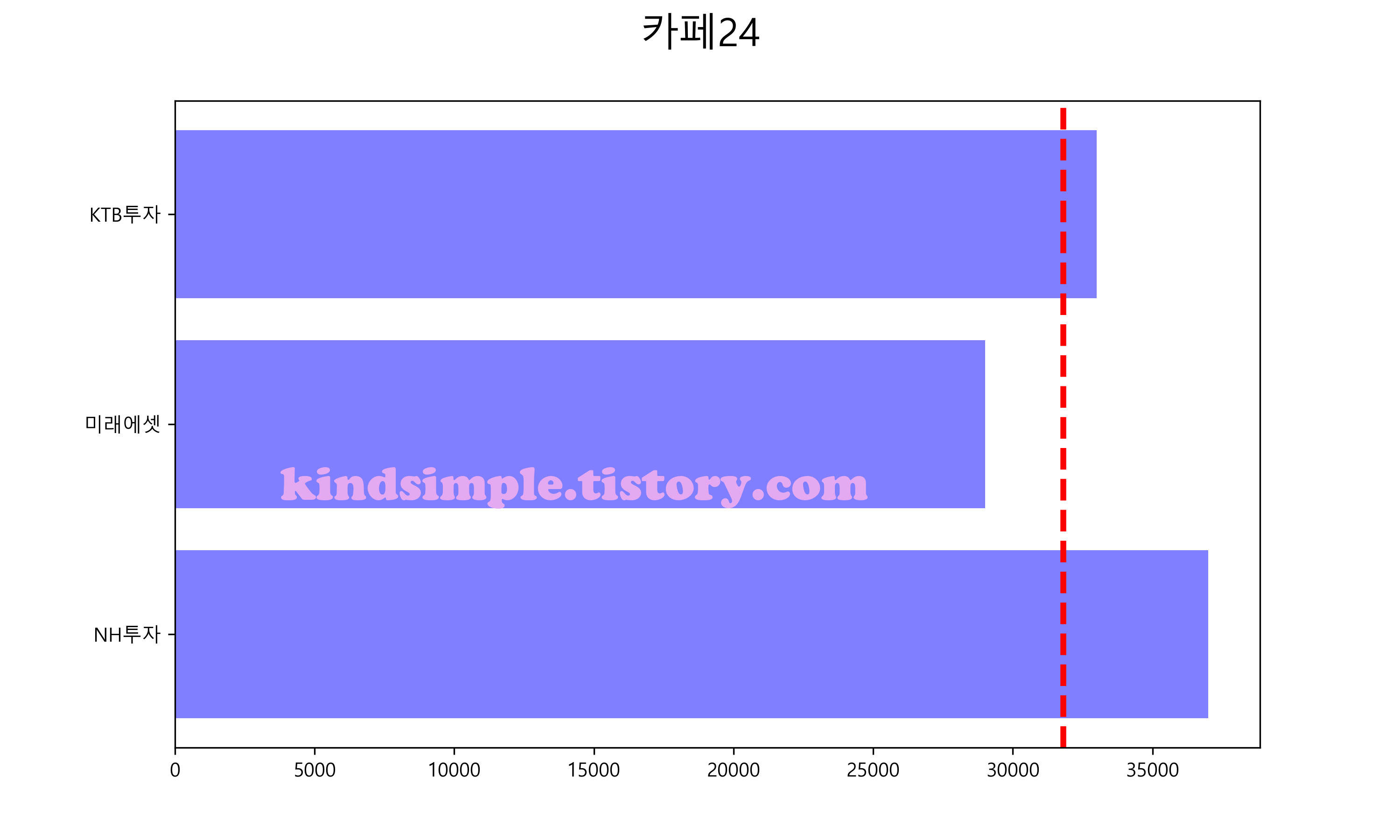 아래 그래프의 빨간색 점선이 현재 주가입니다.