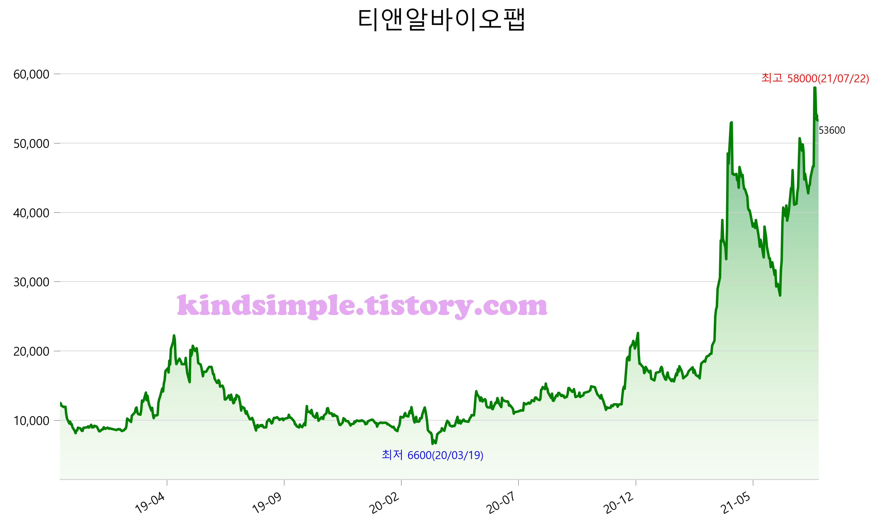 7월 26일 기준 주가는 53,600원 입니다. 아래는 최근 3년간의 주가흐름입니다.