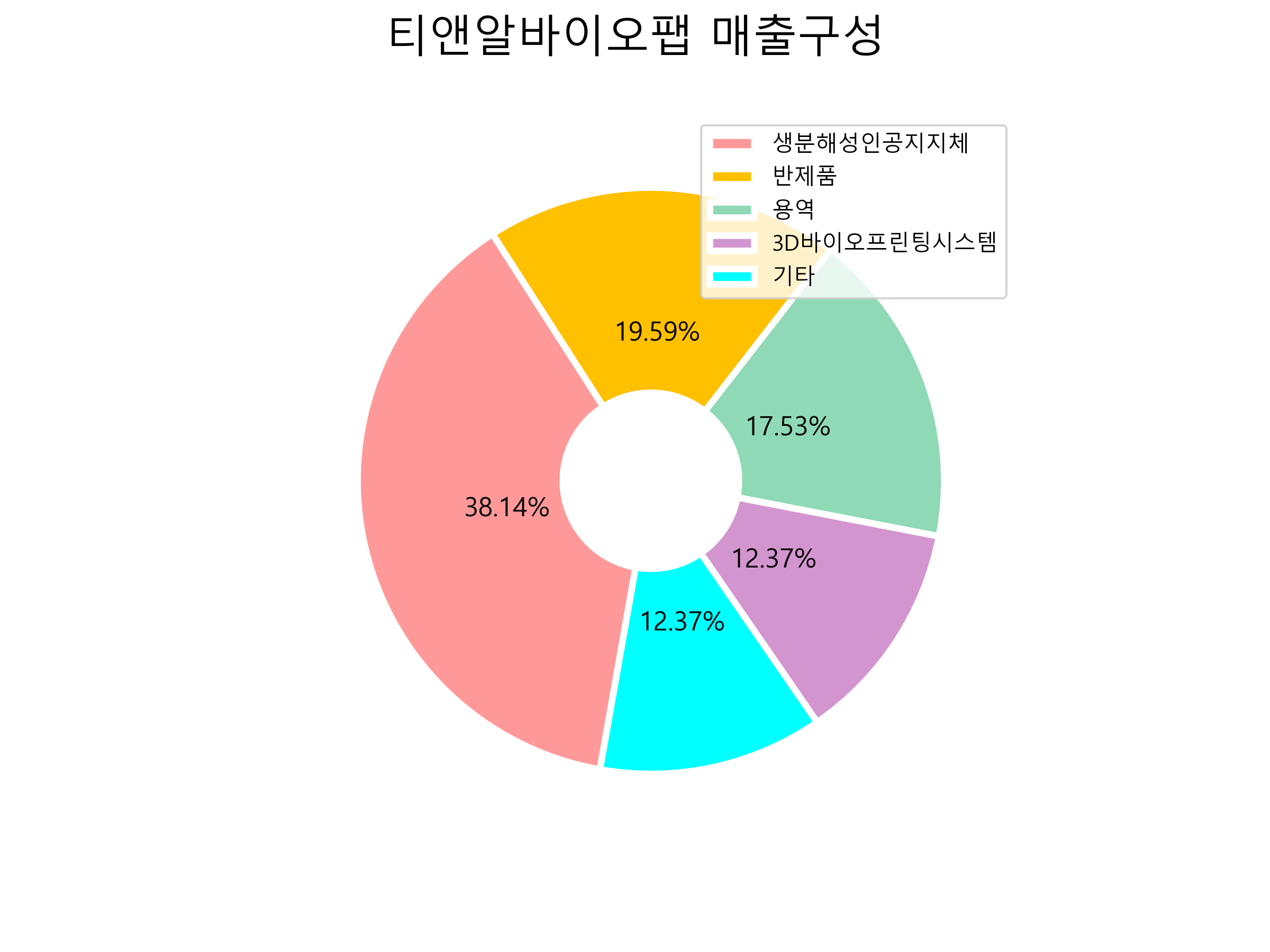 티앤알바이오팹의 매출구성입니다.