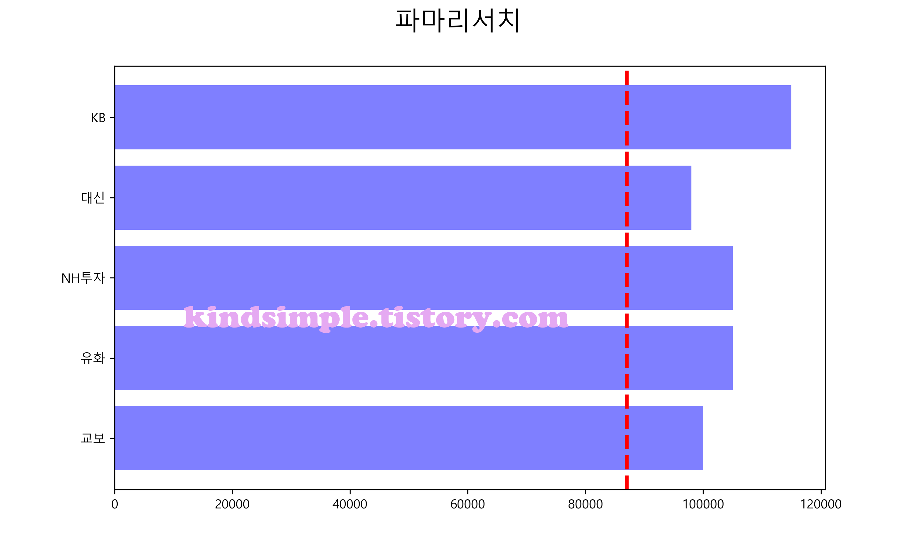 아래 그래프의 빨간색 점선이 현재 주가입니다.