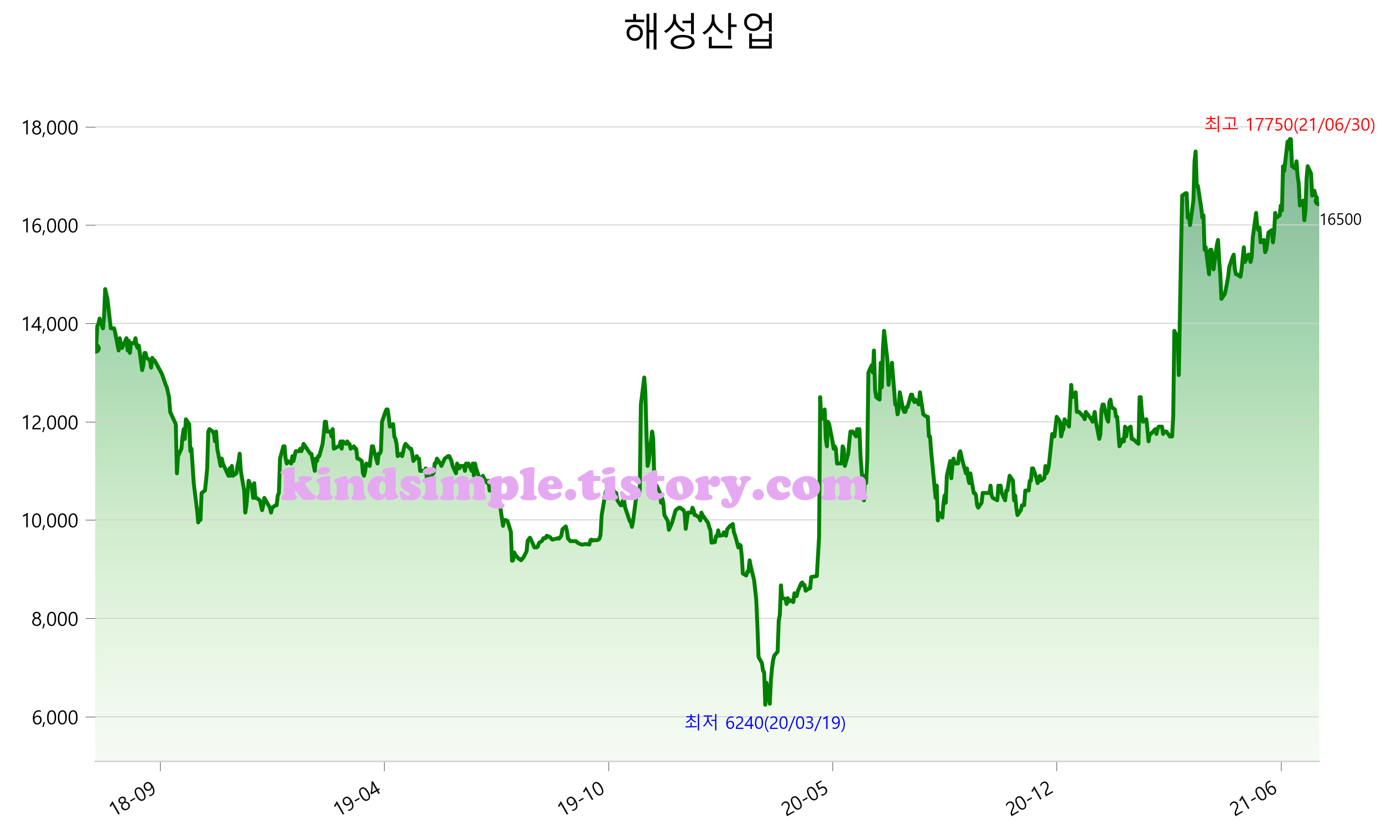 7월 26일 기준 주가는 16,500원 입니다. 아래는 최근 3년간의 주가흐름입니다.