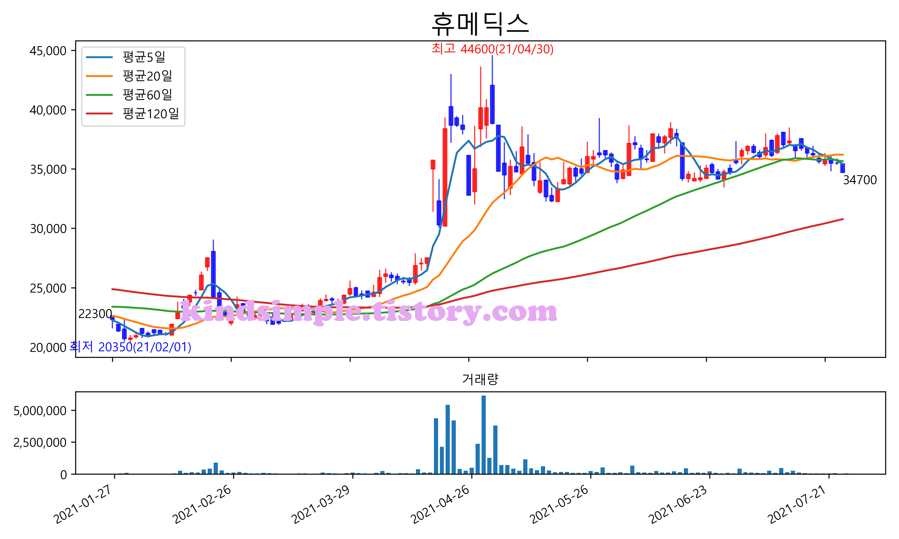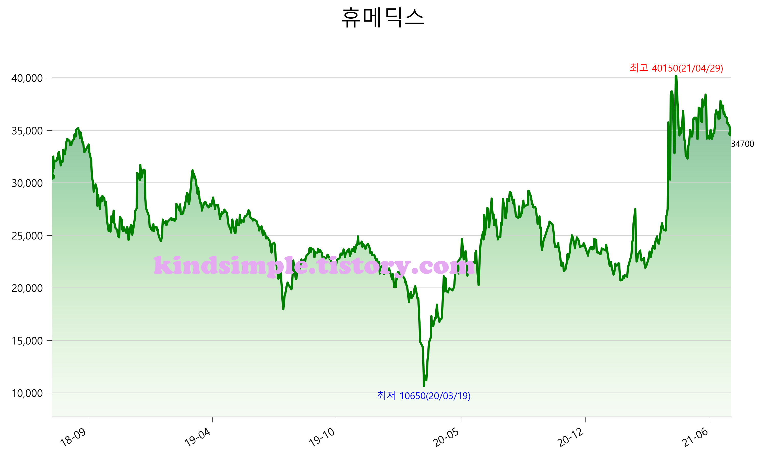7월 26일 기준 주가는 34,700원 입니다. 아래는 최근 3년간의 주가흐름입니다.