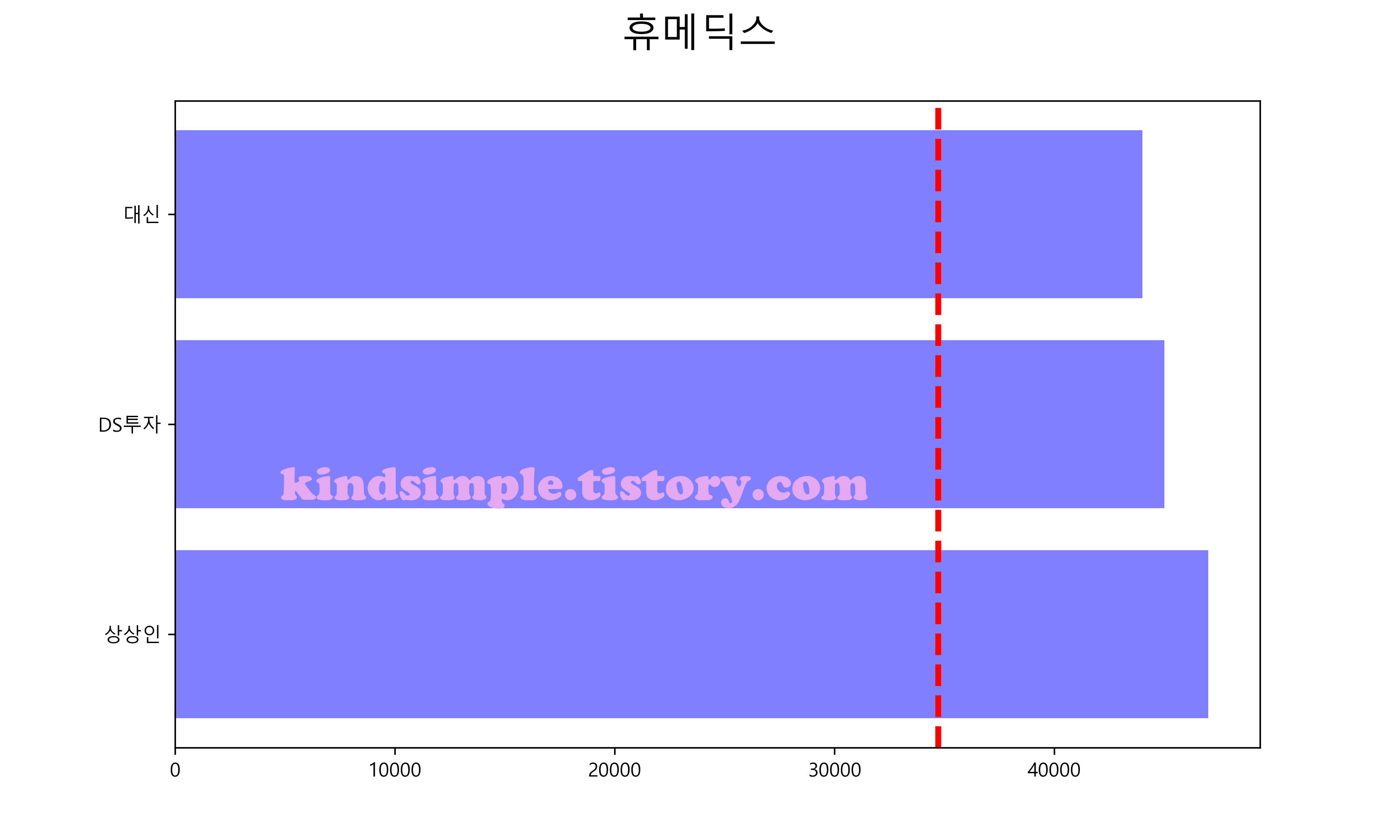 아래 그래프의 빨간색 점선이 현재 주가입니다.