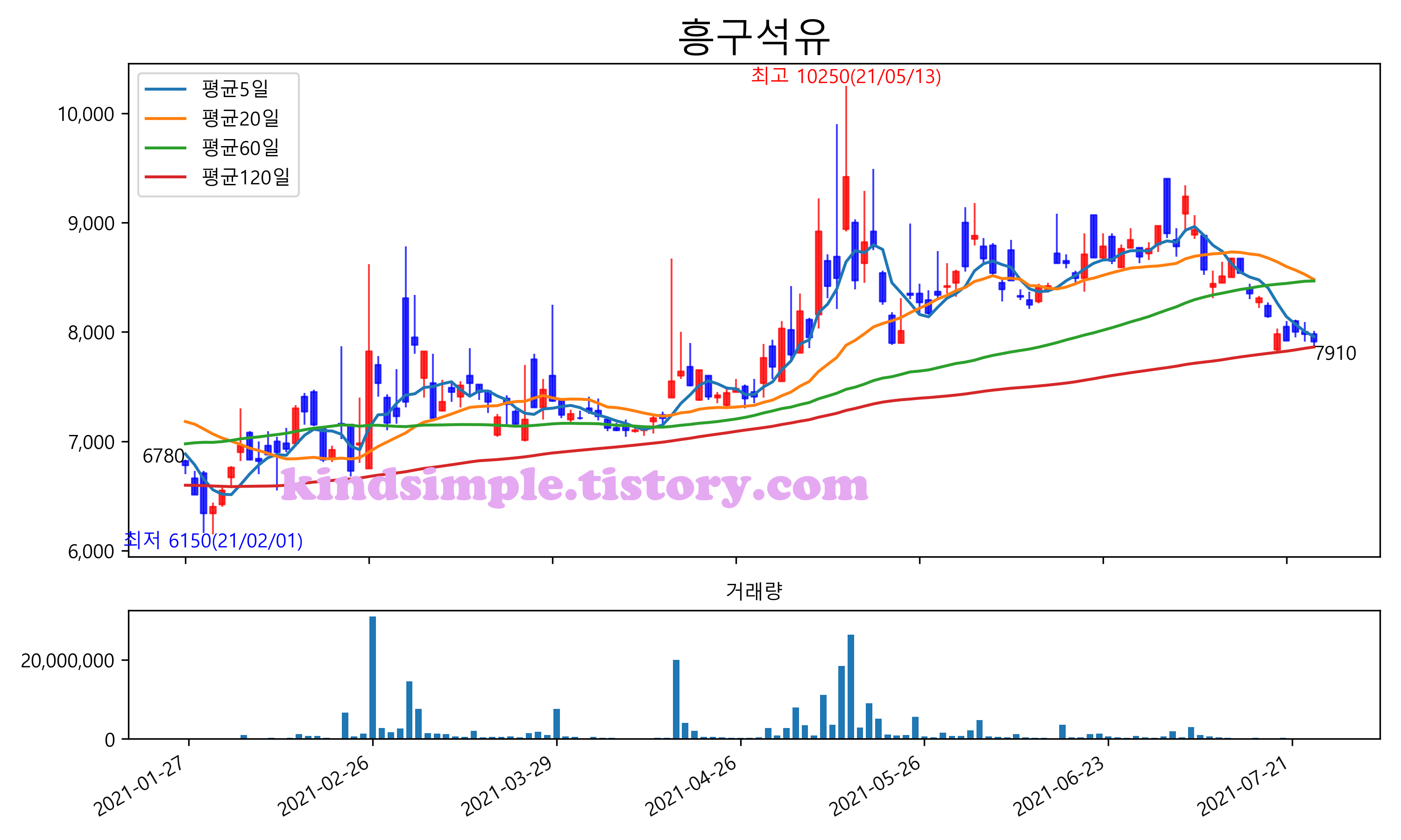 최근 6개월간 캔들차트 및 이동평균선입니다.