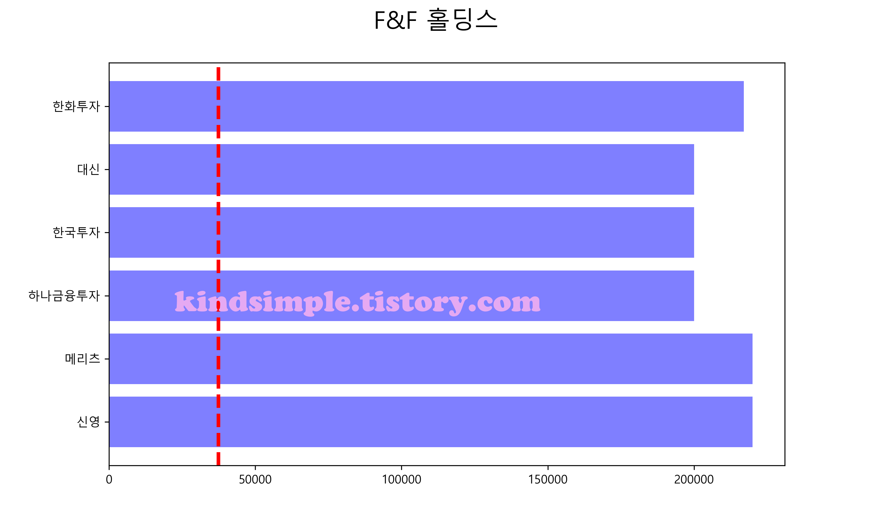 아래 그래프의 빨간색 점선이 현재 주가입니다.