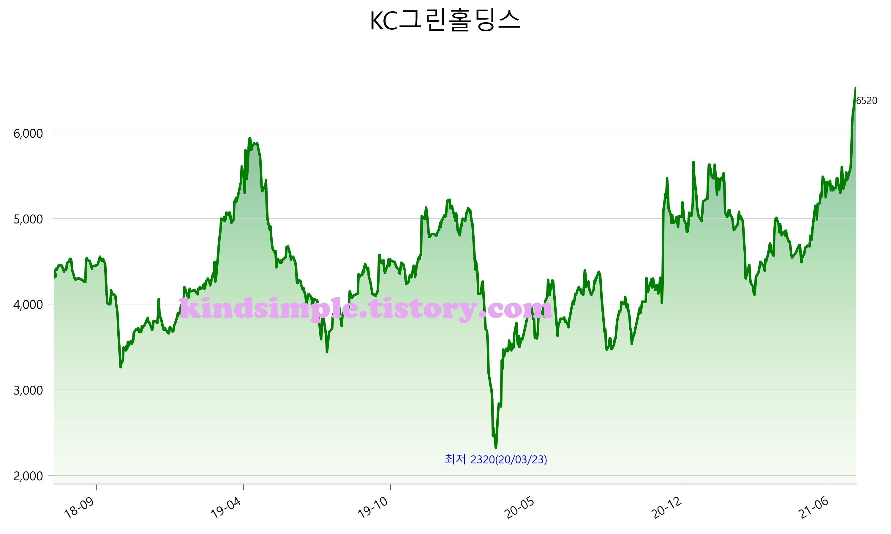 7월 26일 기준 주가는 6,520원 입니다. 아래는 최근 3년간의 주가흐름입니다.