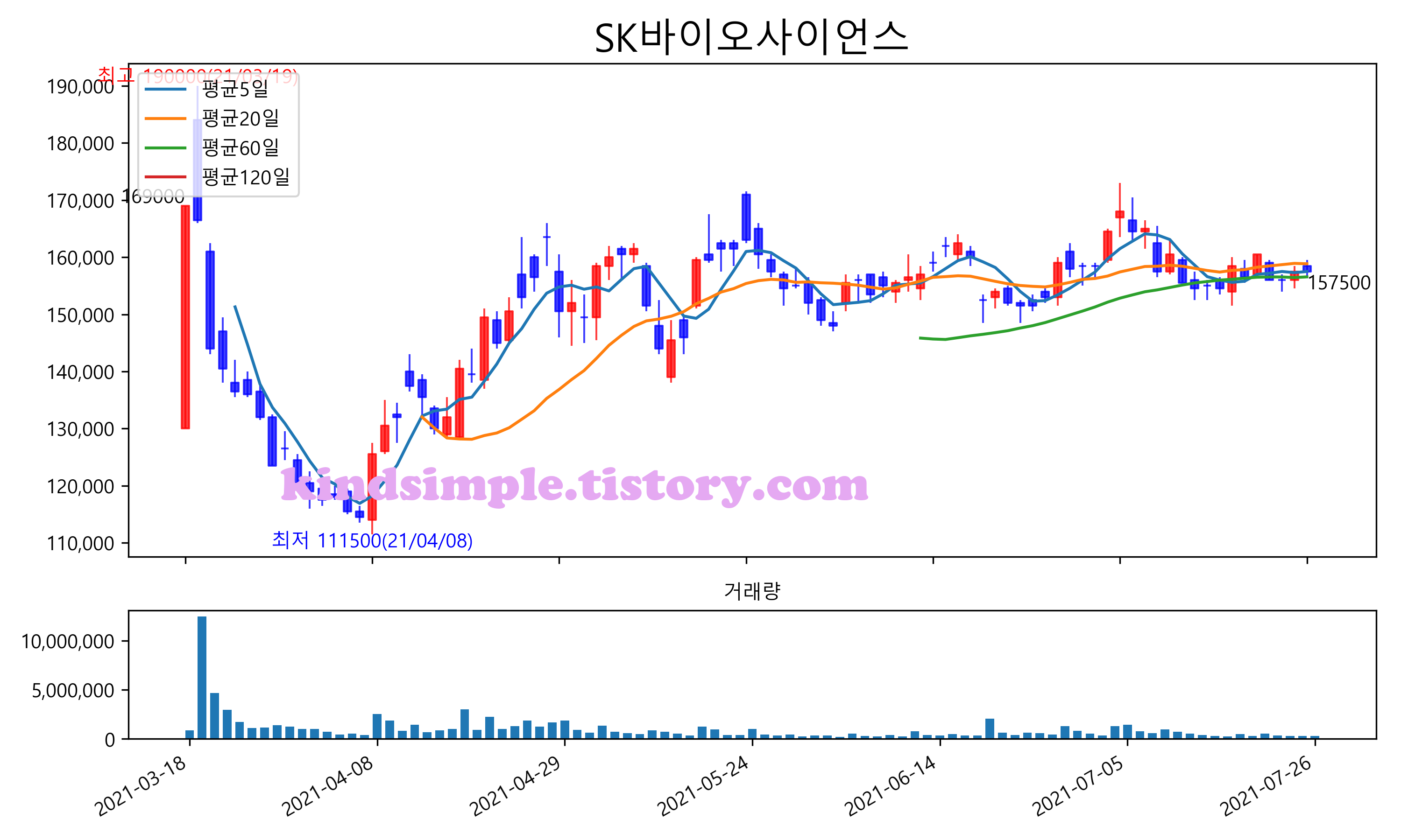 7월 27일 기준 주가는 157,500원 입니다. 아래는 최근 3년간의 주가흐름입니다.