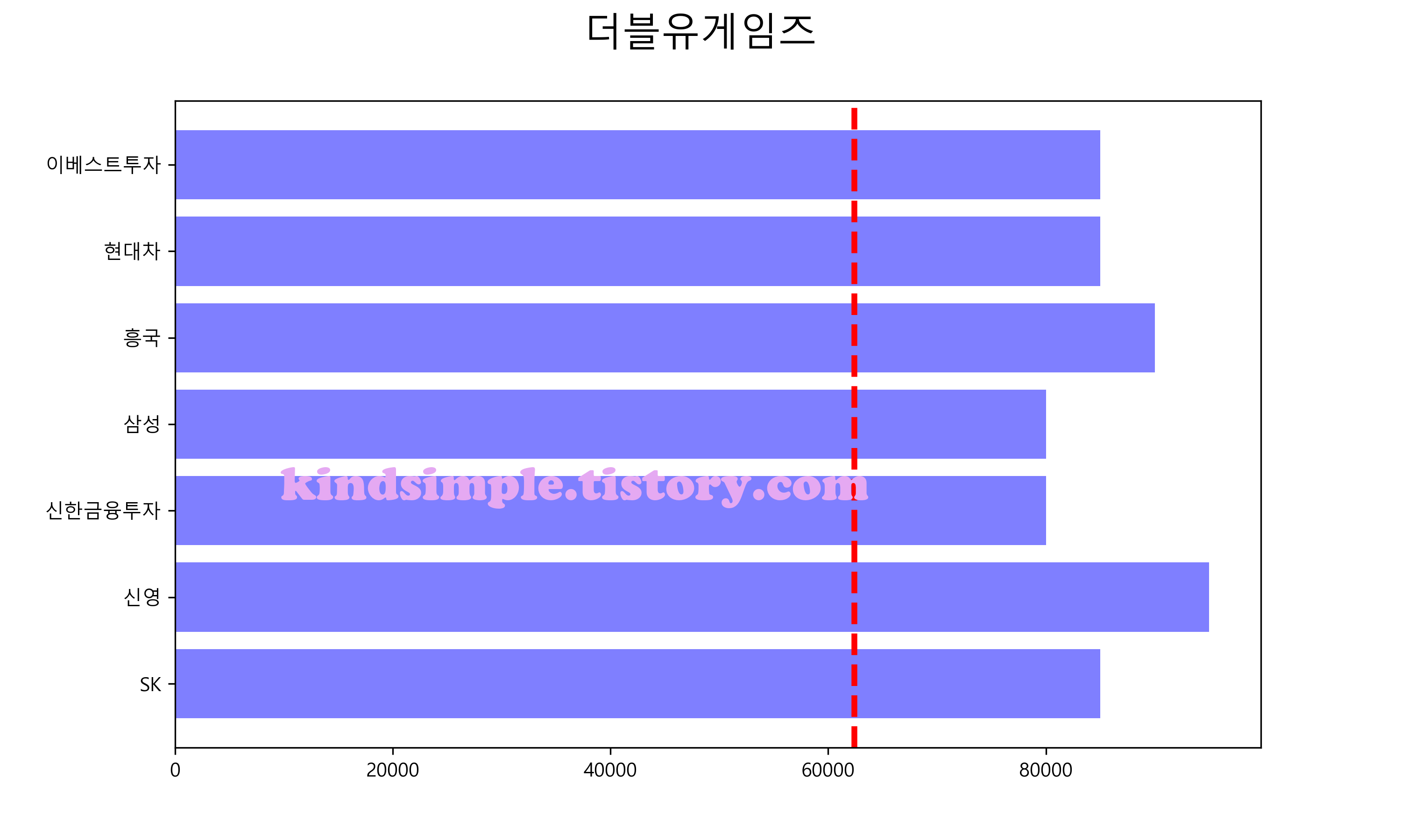 아래 그래프의 빨간색 점선이 현재 주가입니다.