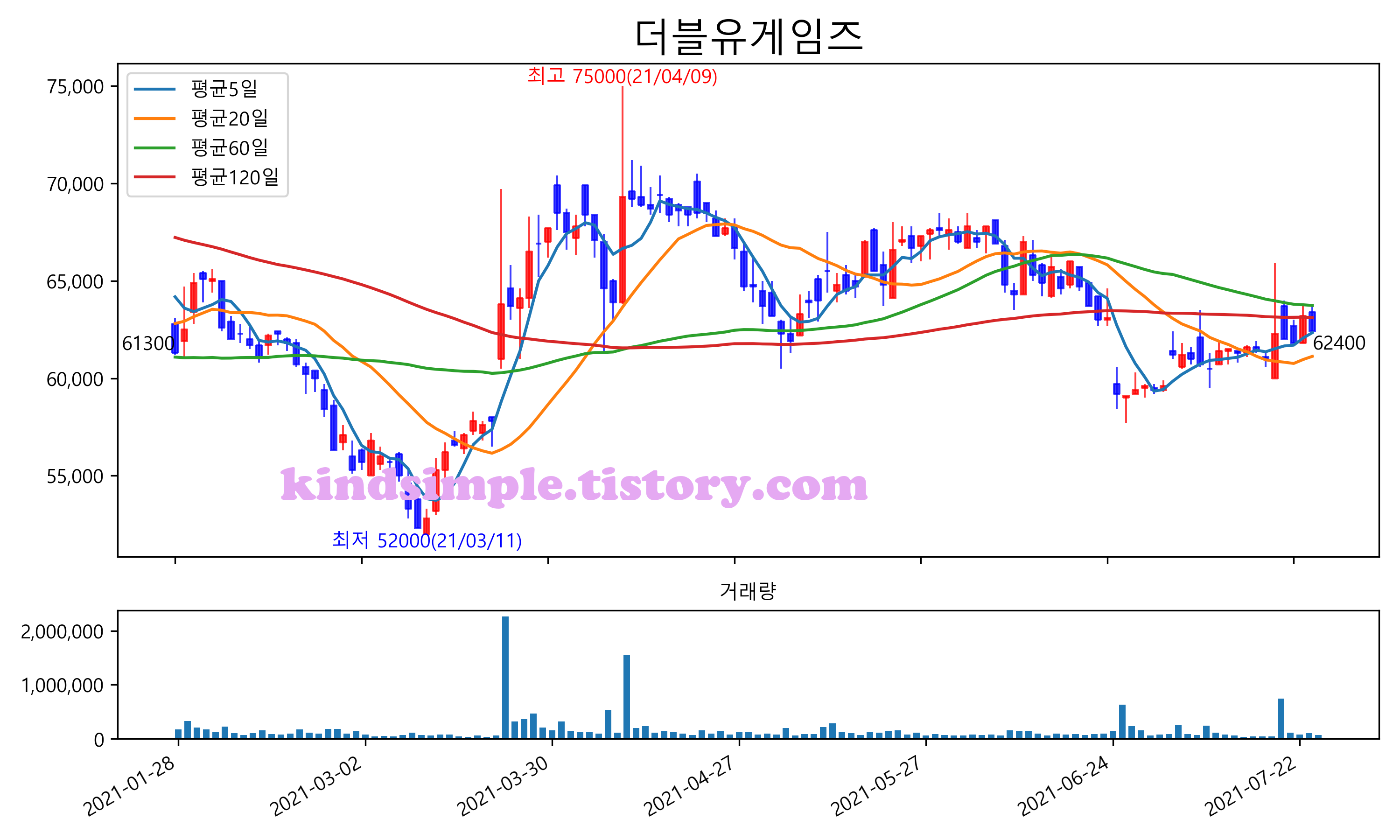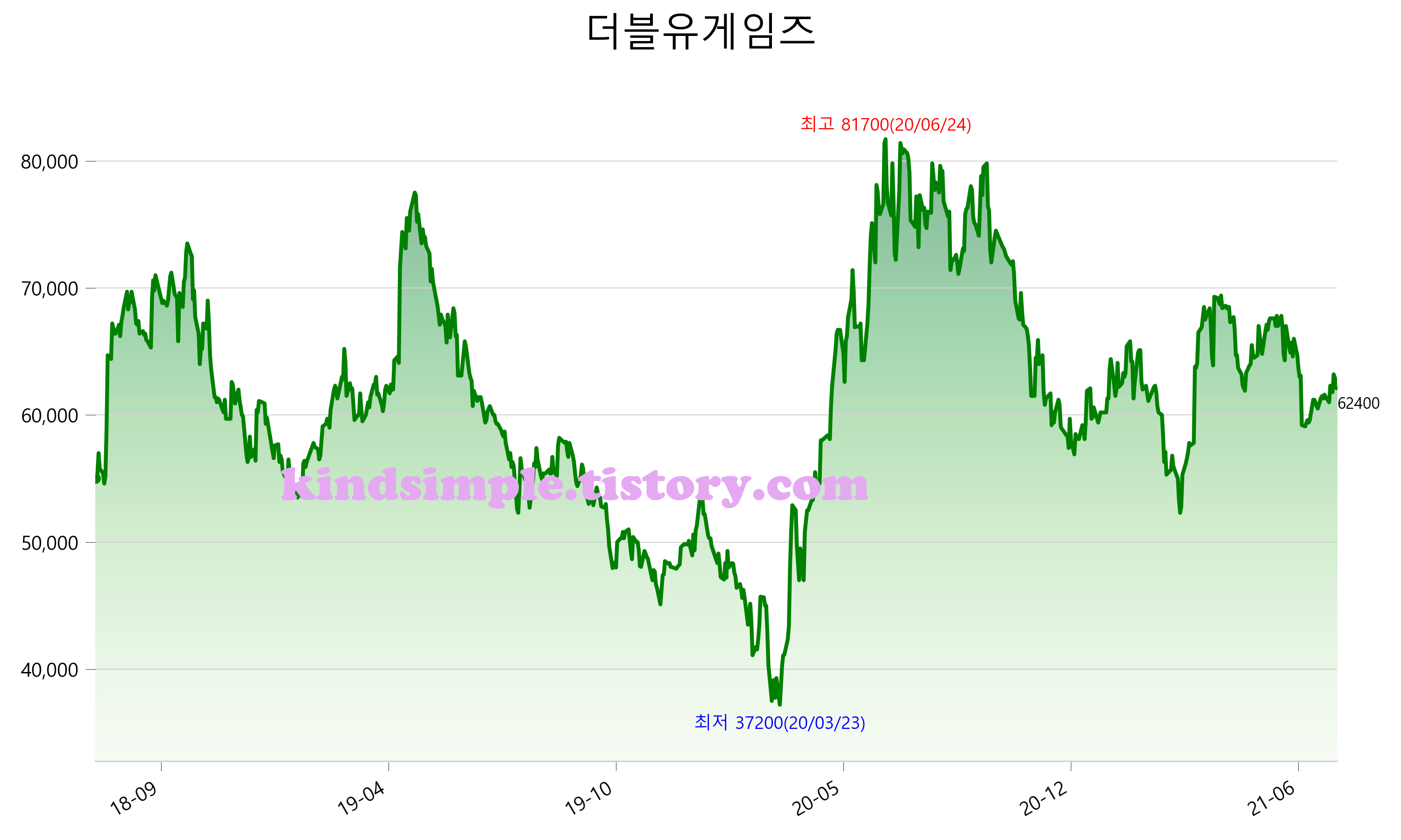 7월 27일 기준 주가는 62,400원 입니다. 아래는 최근 3년간의 주가흐름입니다.