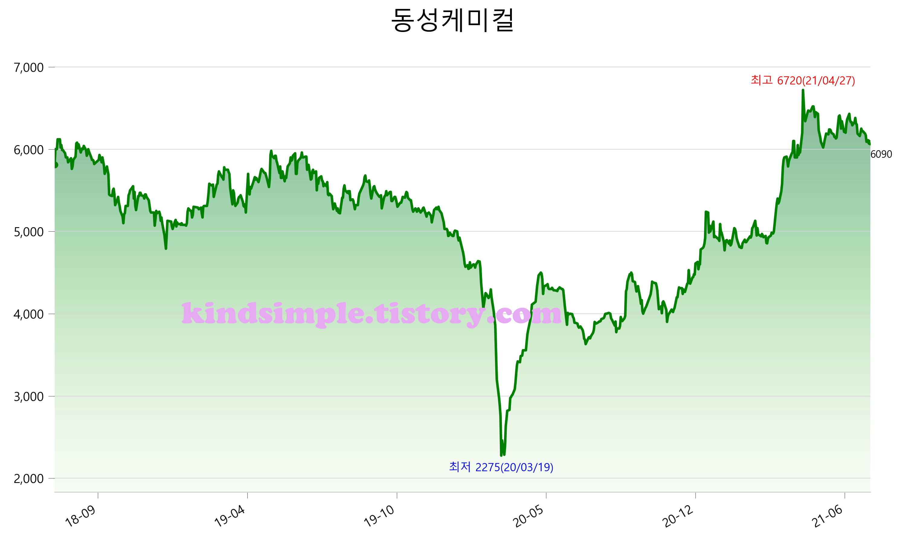 7월 27일 기준 주가는 6,090원 입니다. 아래는 최근 3년간의 주가흐름입니다.