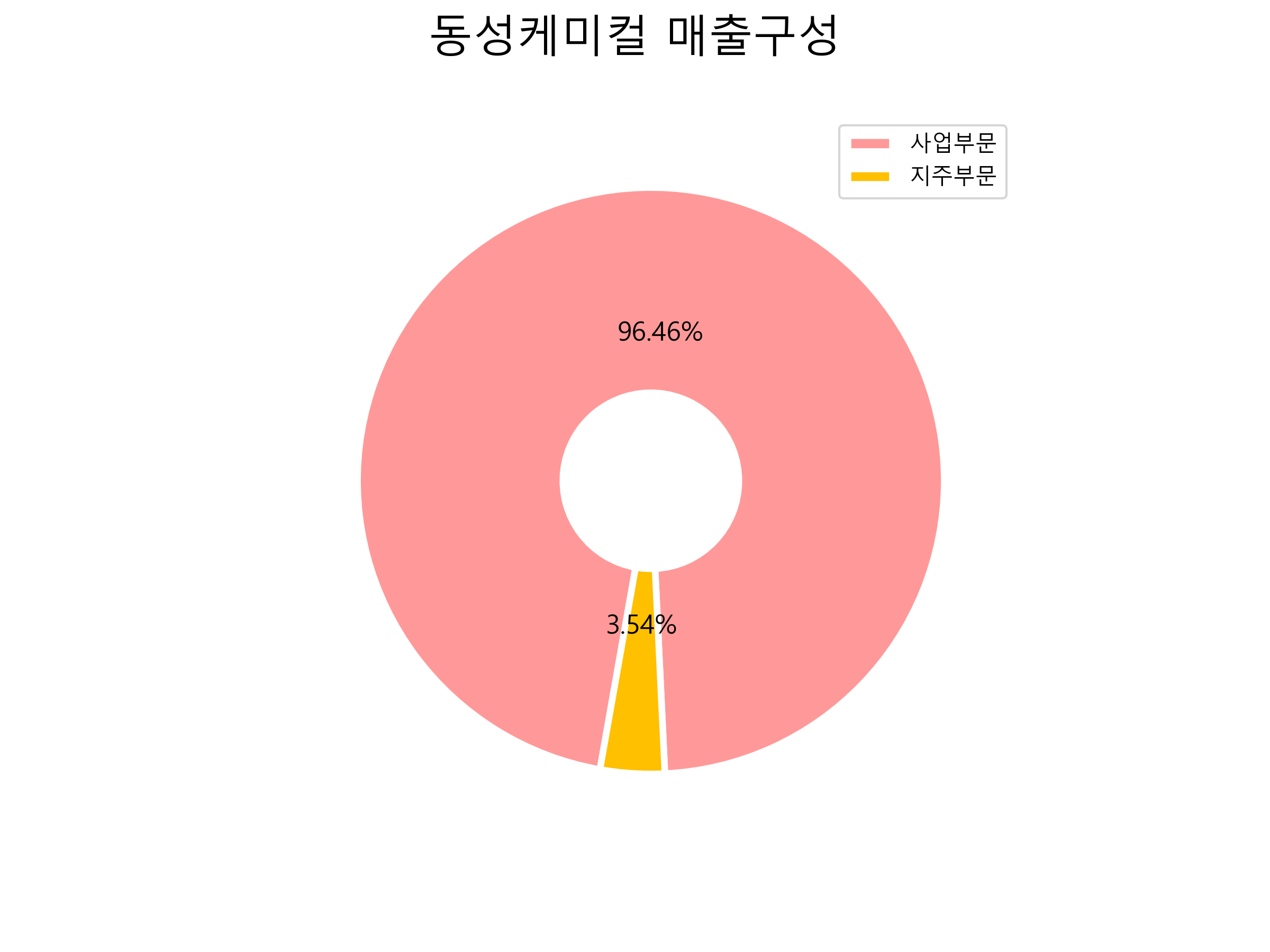 - 자회사 등으로부터 받는 배당금, 자문료, 수수료로 수익을 얻는 지주부문과 정밀화학, 우레탄사업 등을 영위하는 사업부문이 있음.