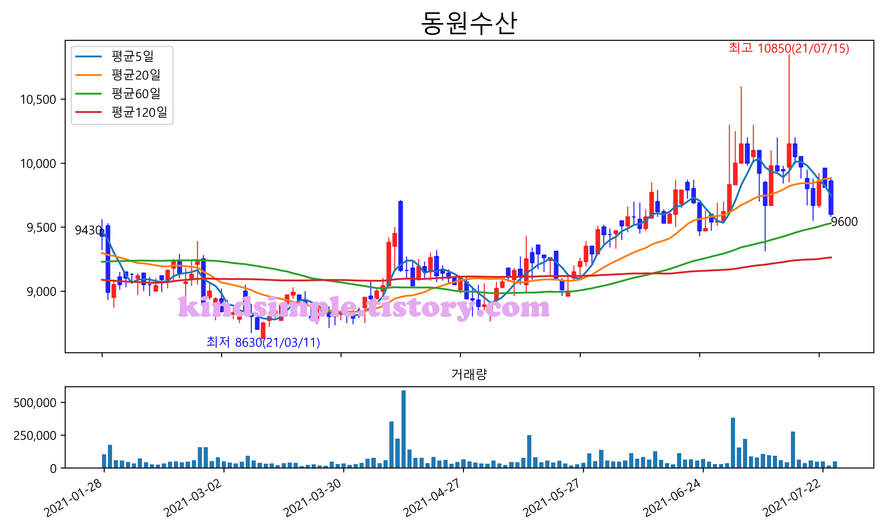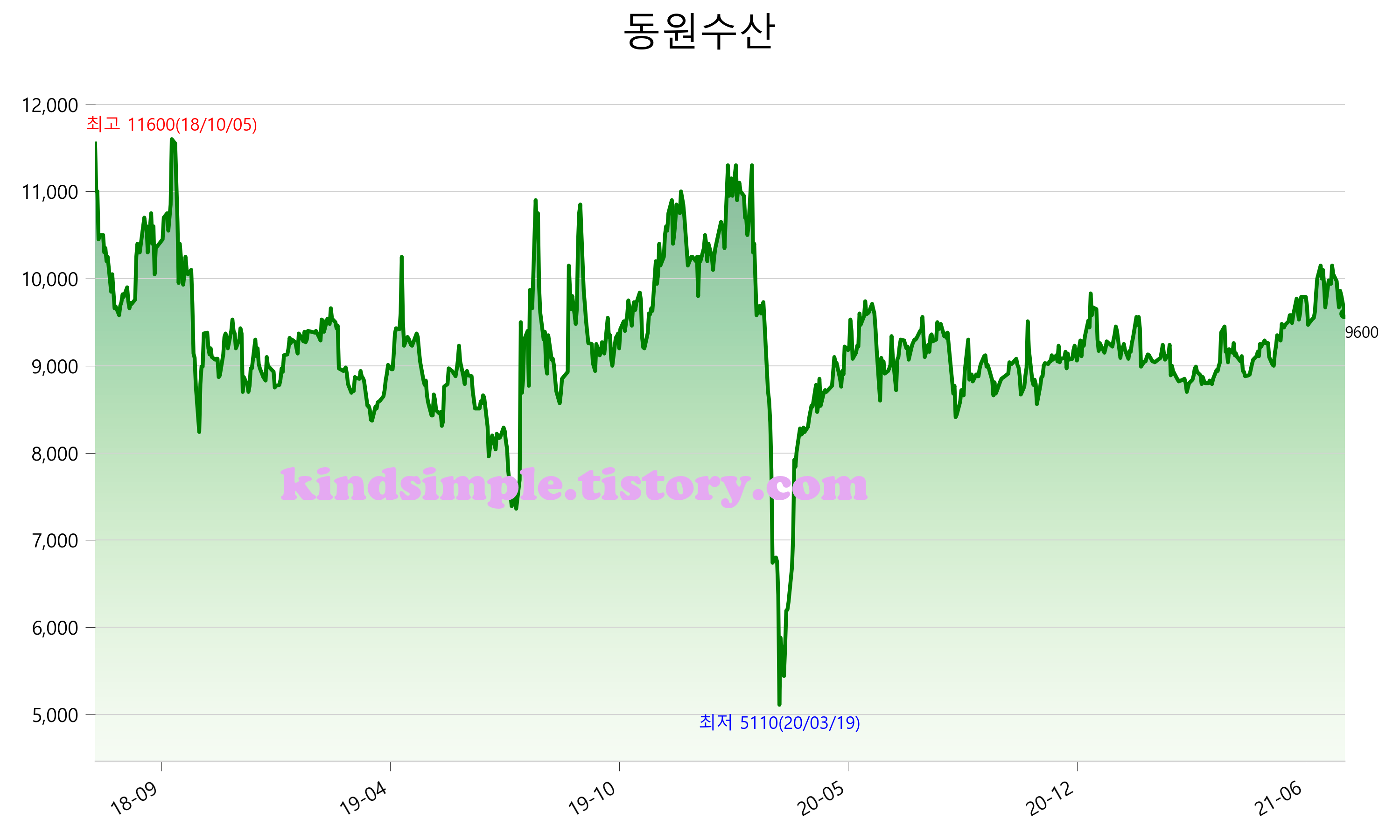 7월 27일 기준 주가는 9,600원 입니다. 아래는 최근 3년간의 주가흐름입니다.