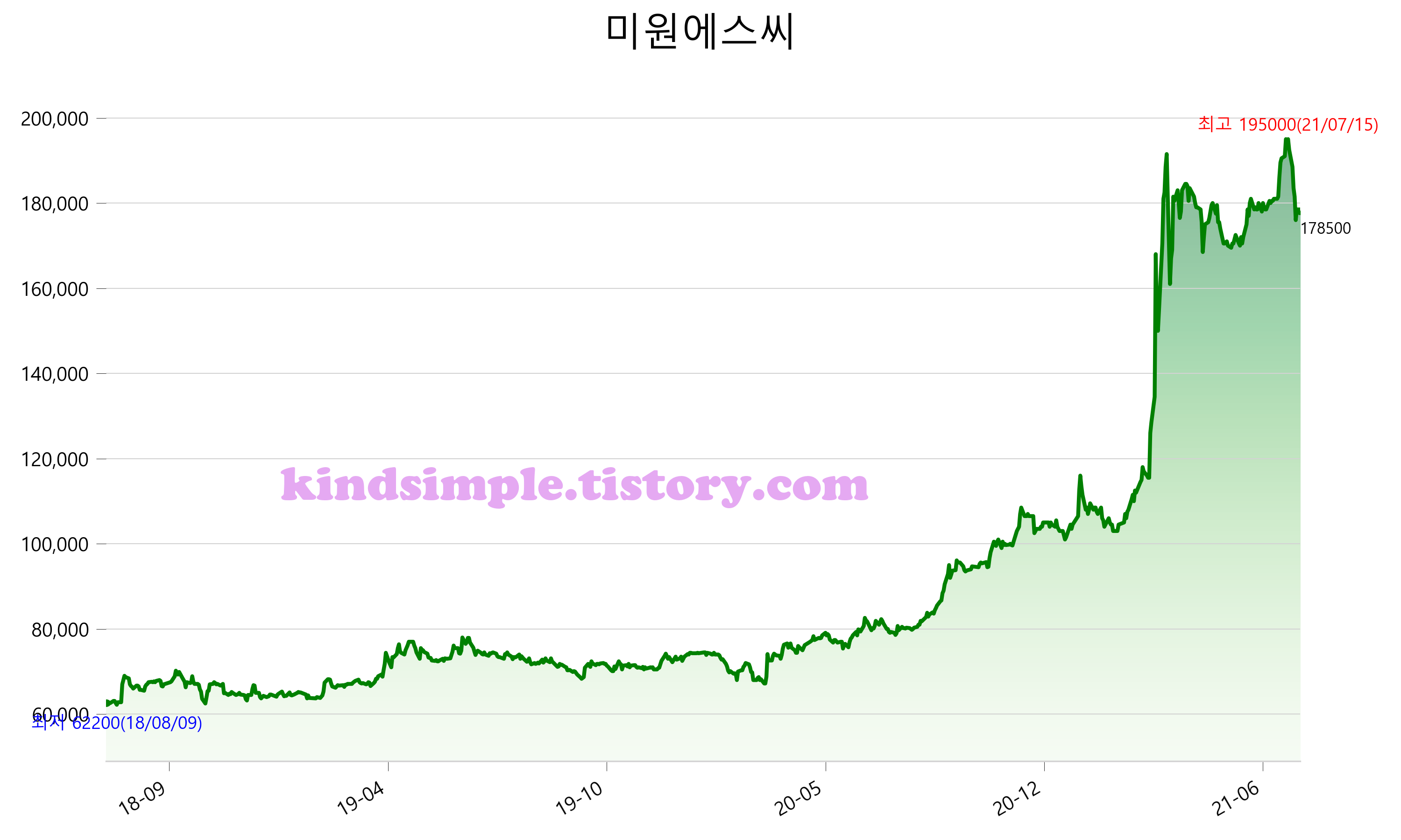 7월 27일 기준 주가는 178,500원 입니다. 아래는 최근 3년간의 주가흐름입니다.