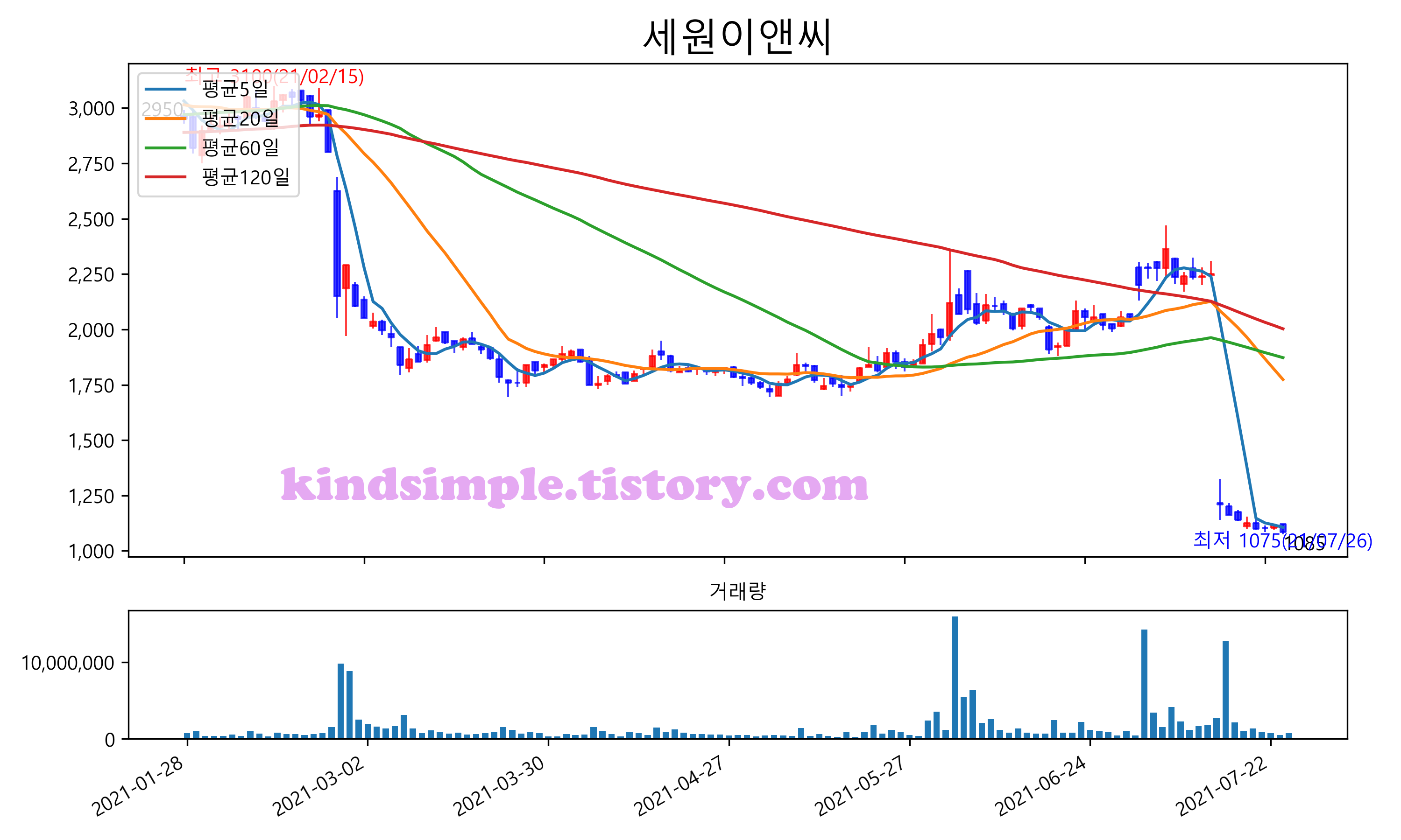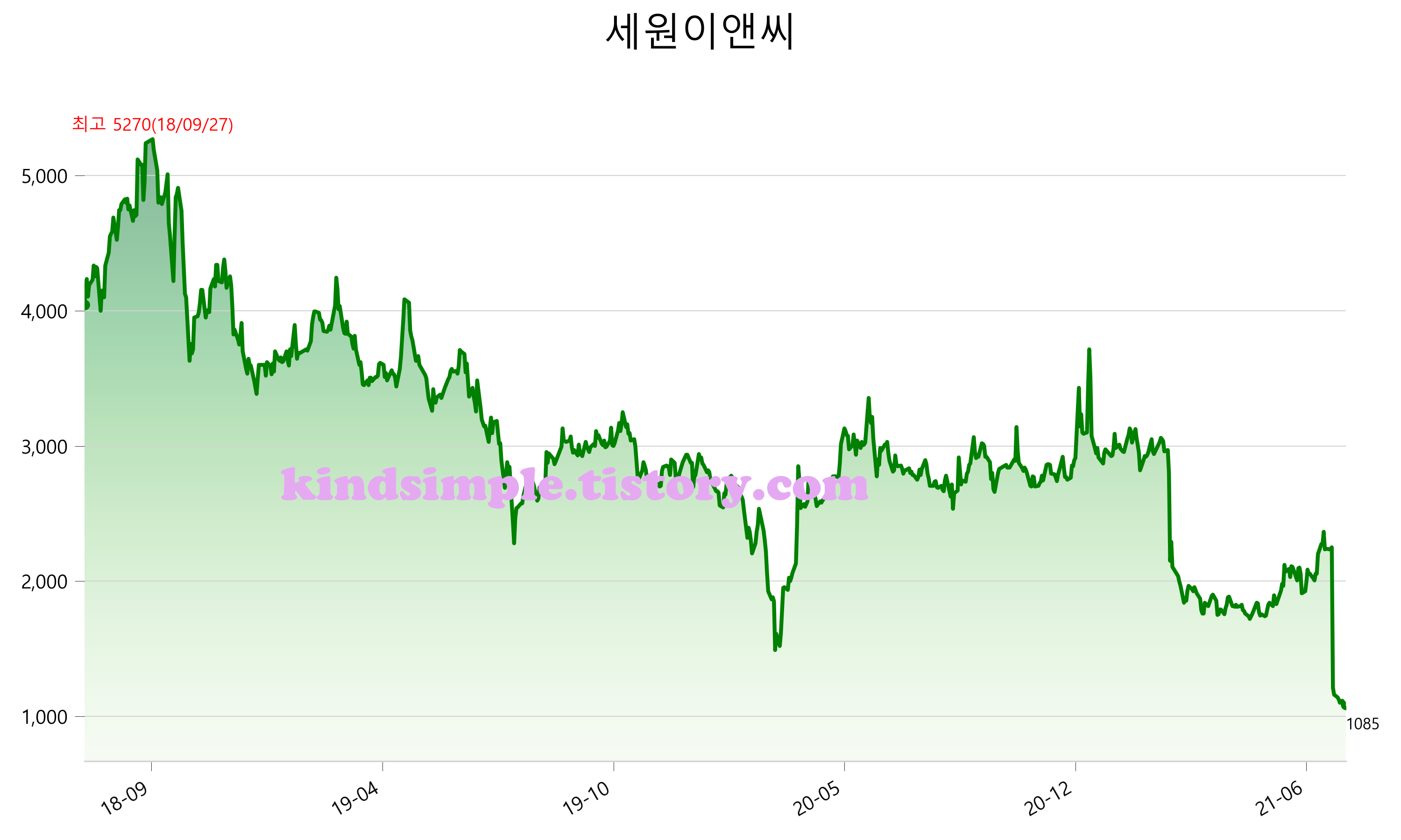 52주 최고가는 3,715원(2020-12-16), 52주 최저가는 1,085원(2021-07-26)으로 52주간 변동률은 -62.1% 입니다.