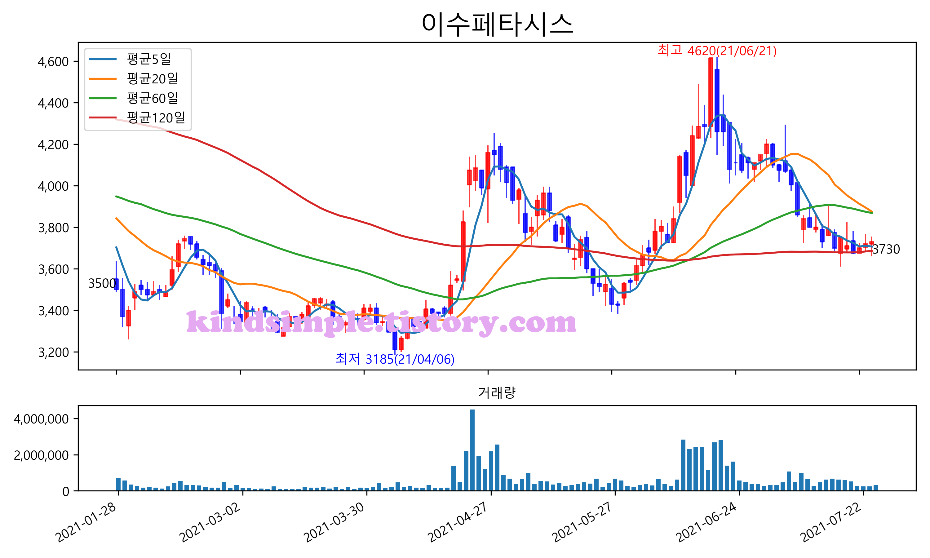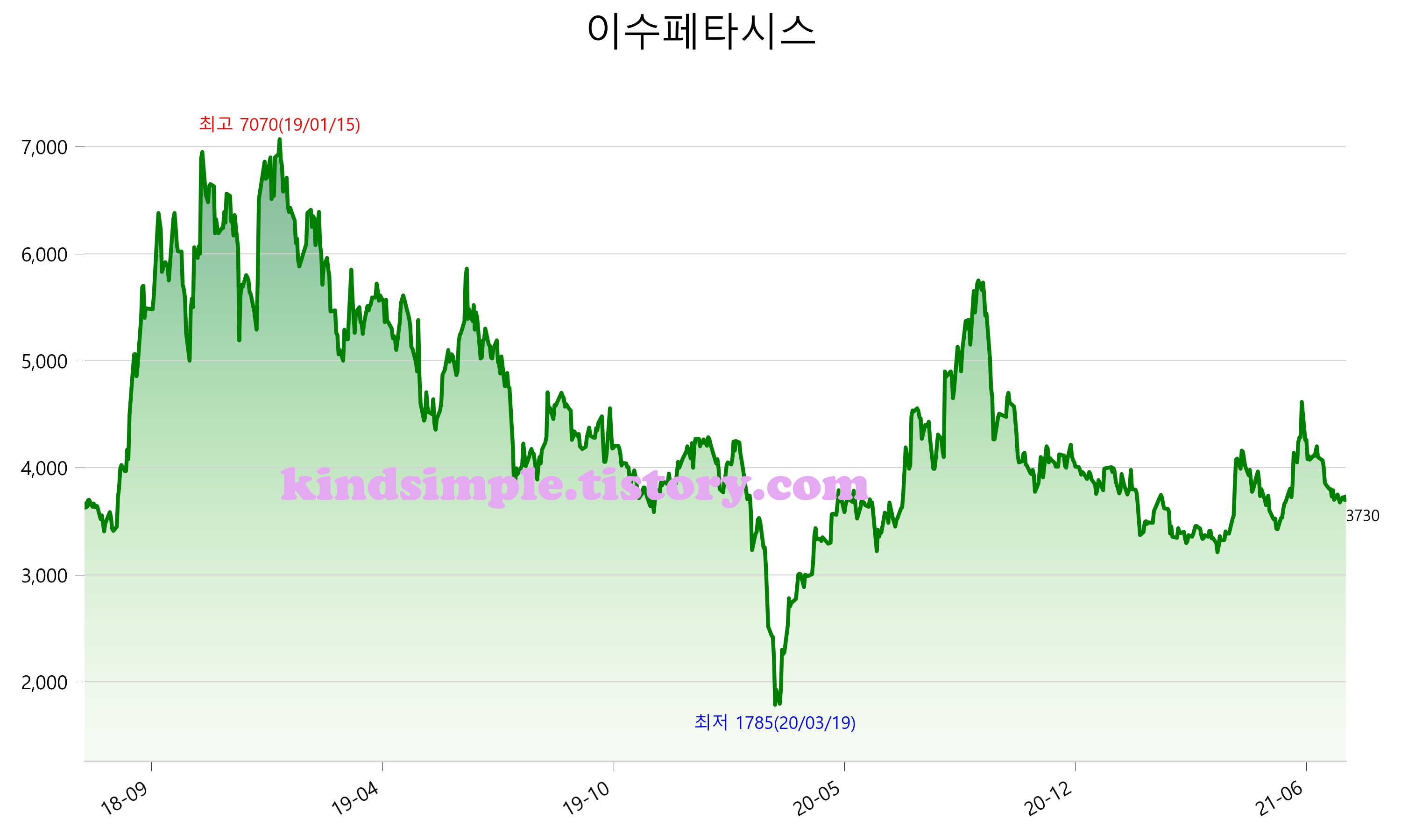 7월 27일 기준 주가는 3,730원 입니다. 아래는 최근 3년간의 주가흐름입니다.