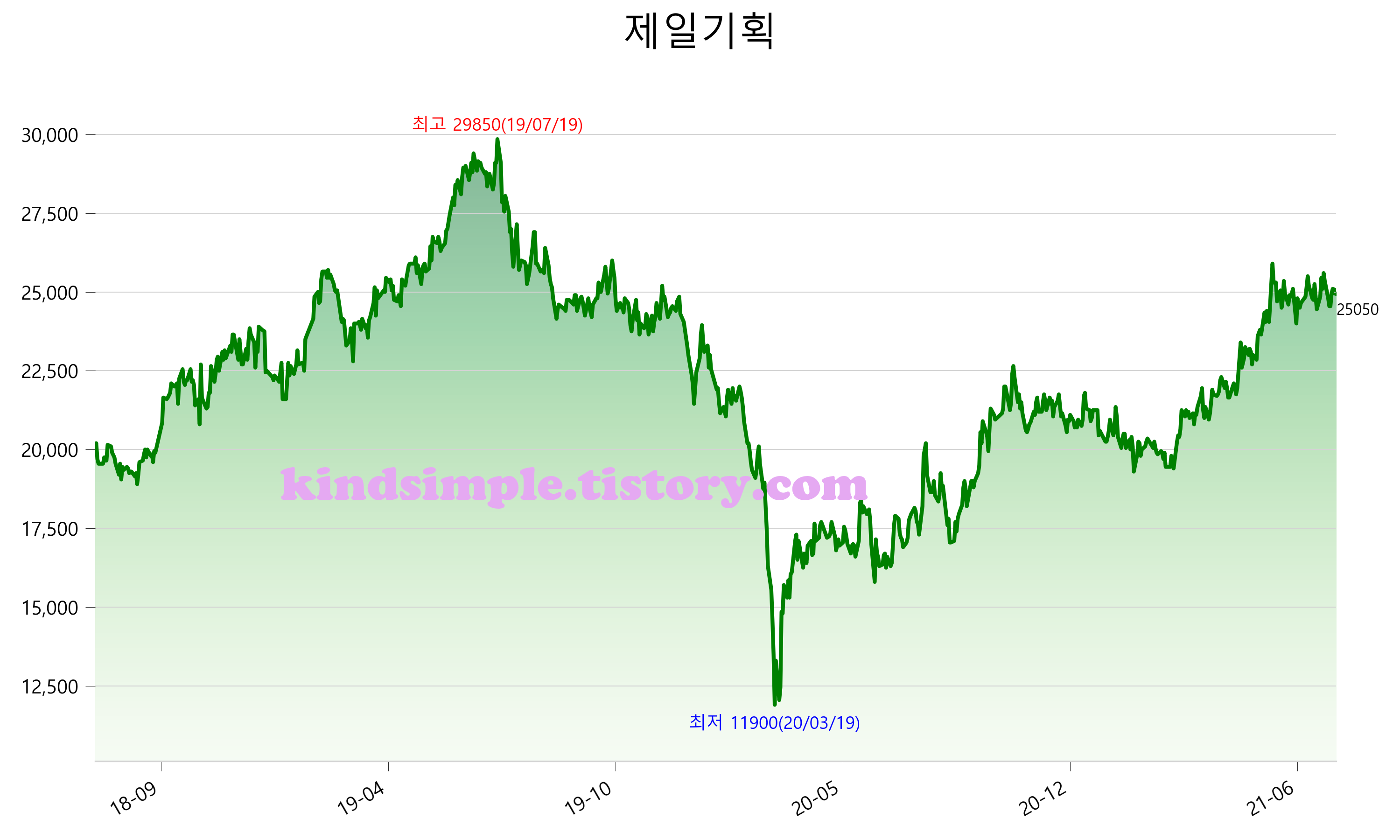 7월 27일 기준 주가는 25,050원 입니다. 아래는 최근 3년간의 주가흐름입니다.