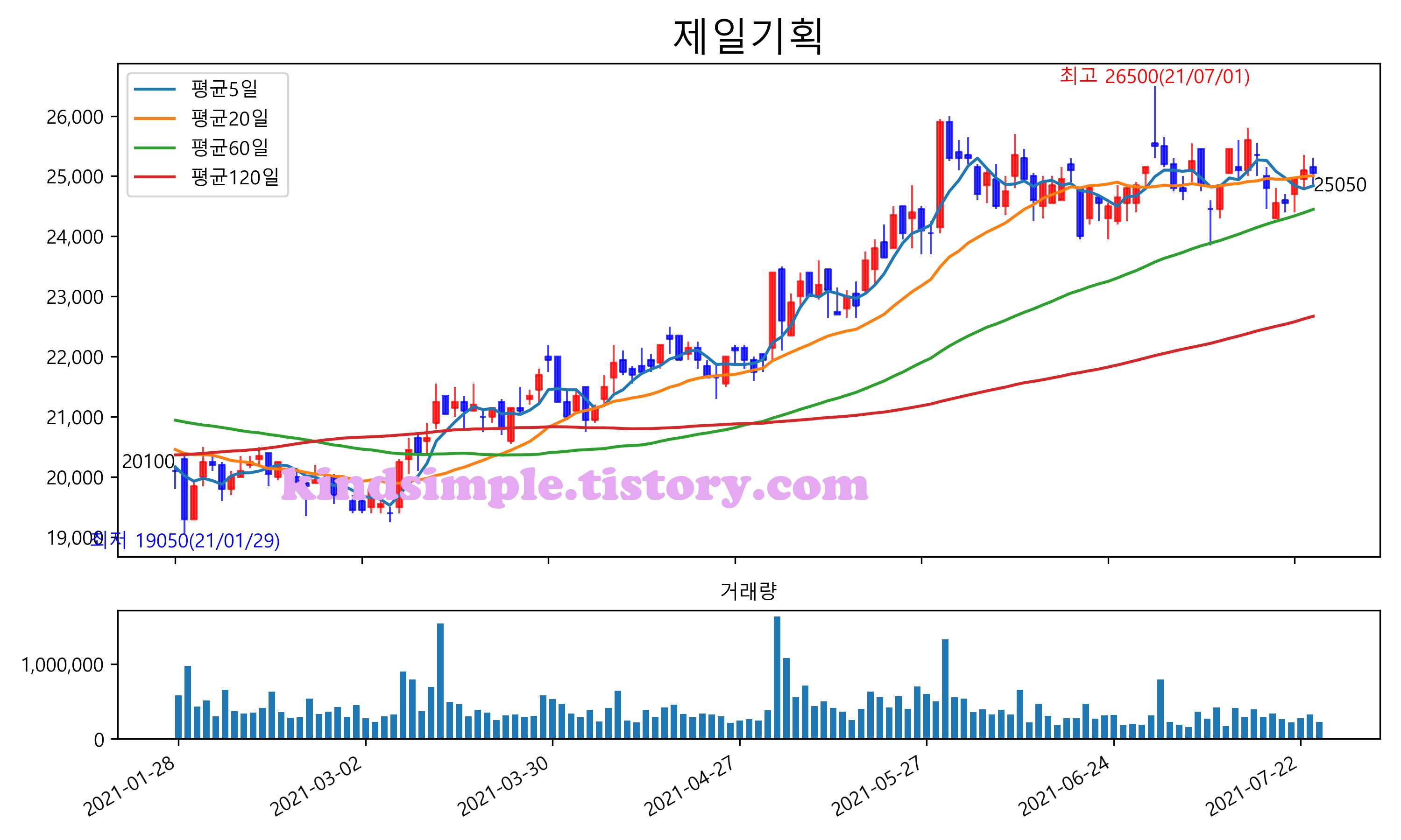 최근 6개월간 캔들차트 및 이동평균선입니다.