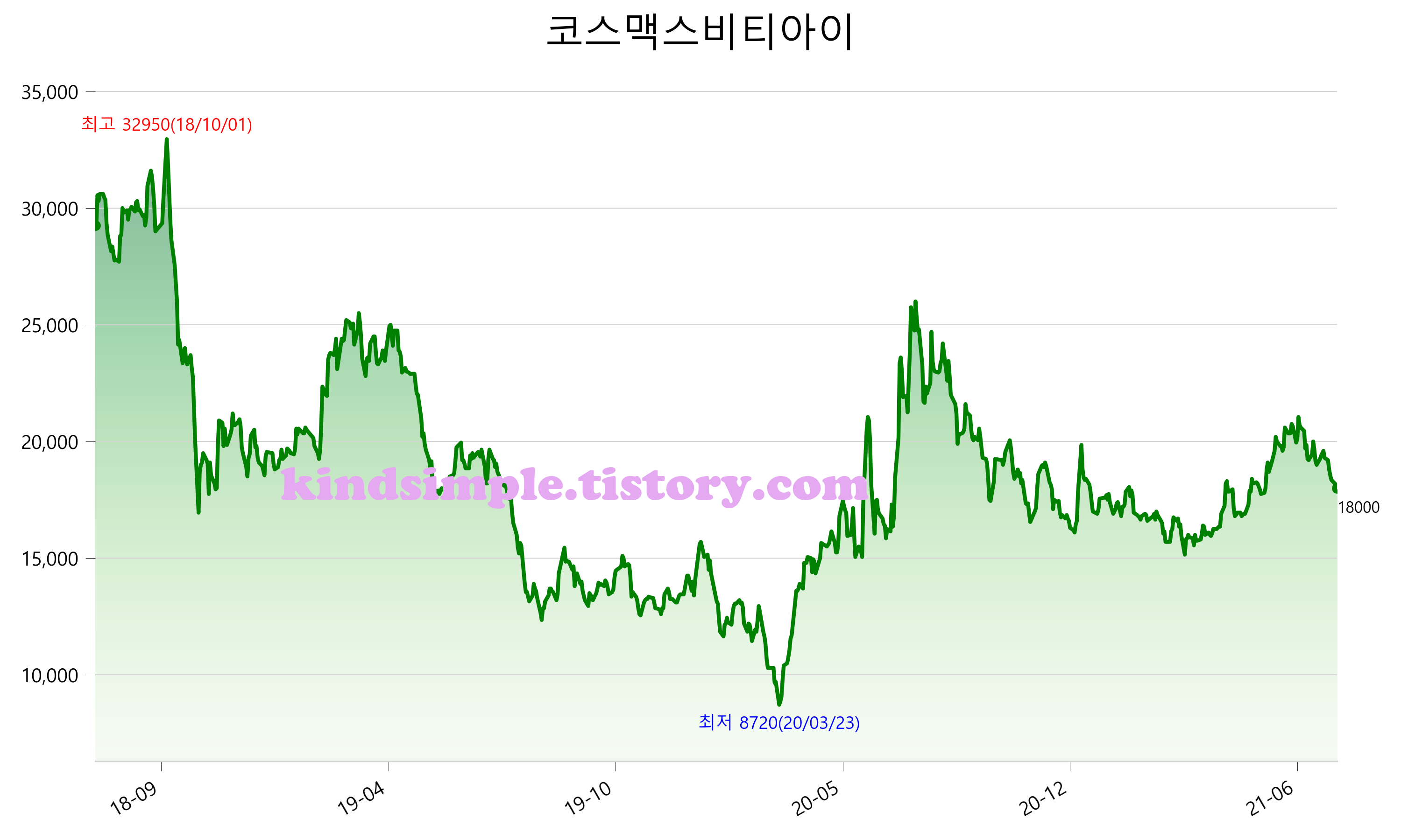 7월 27일 기준 주가는 18,000원 입니다. 아래는 최근 3년간의 주가흐름입니다.
