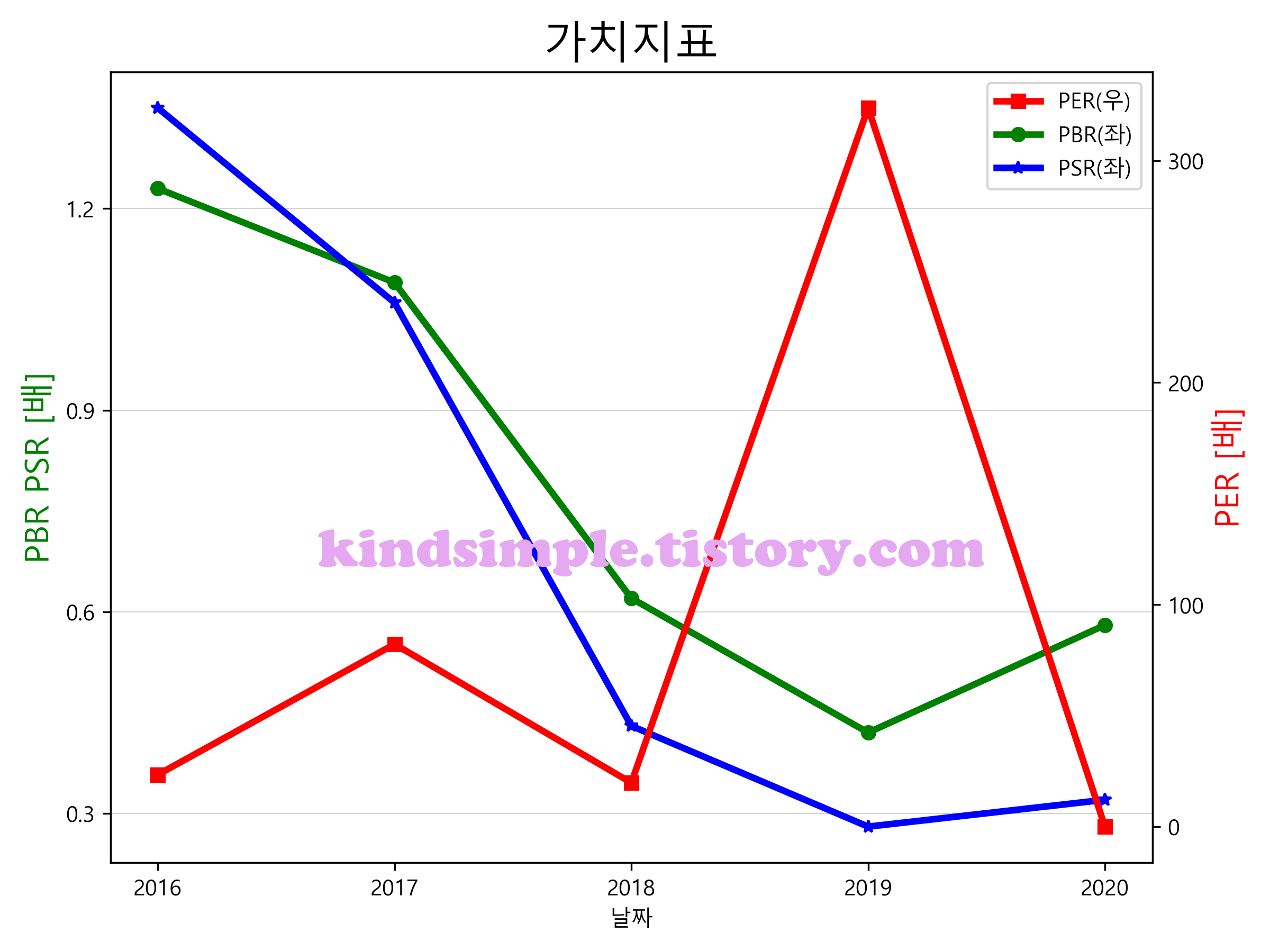 코스맥스비티아이의 PER, PBR, PSR입니다.