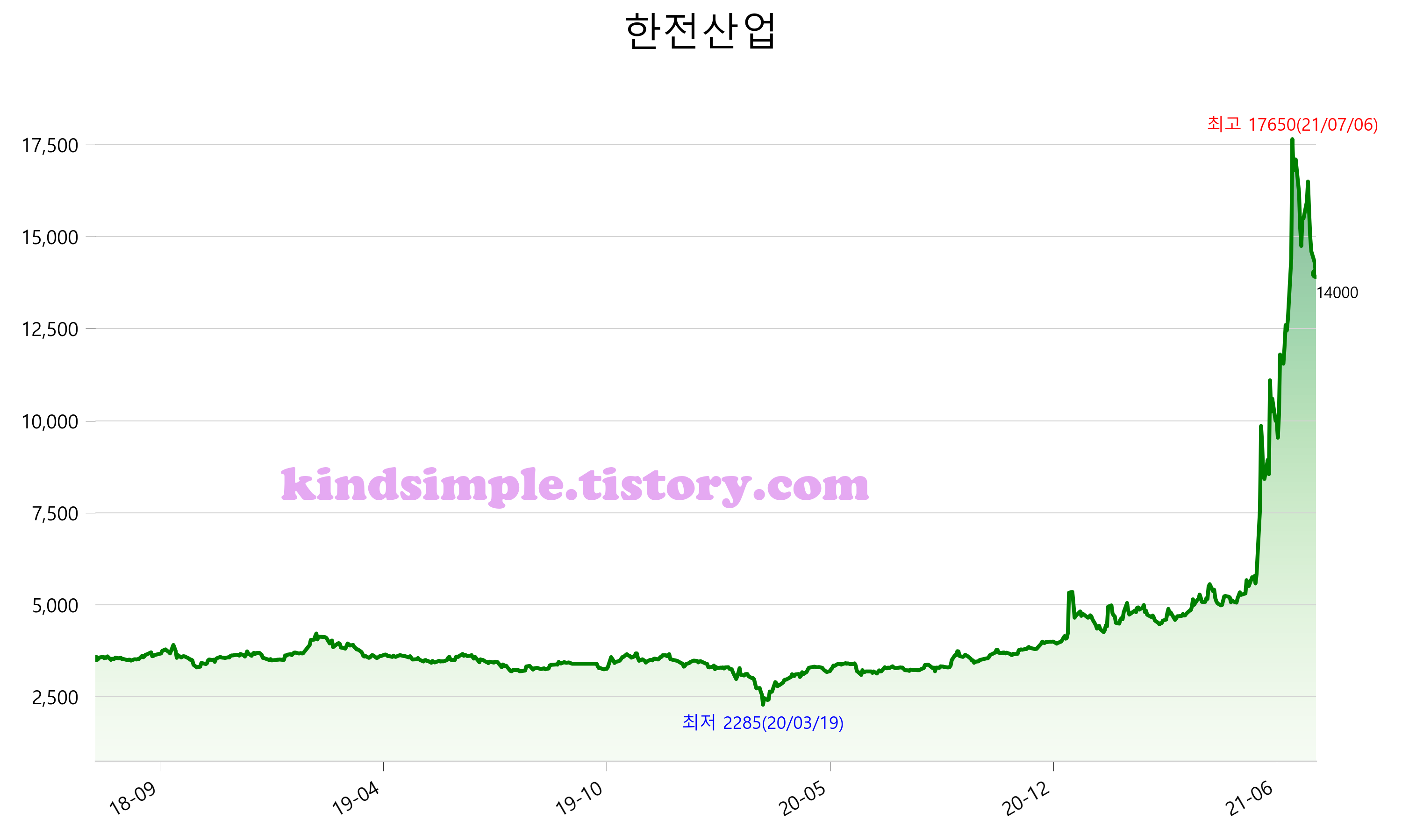 52주 최고가는 17,650원(2021-07-06), 52주 최저가는 3,195원(2020-08-20)으로 52주간 변동률은 336.8% 입니다.