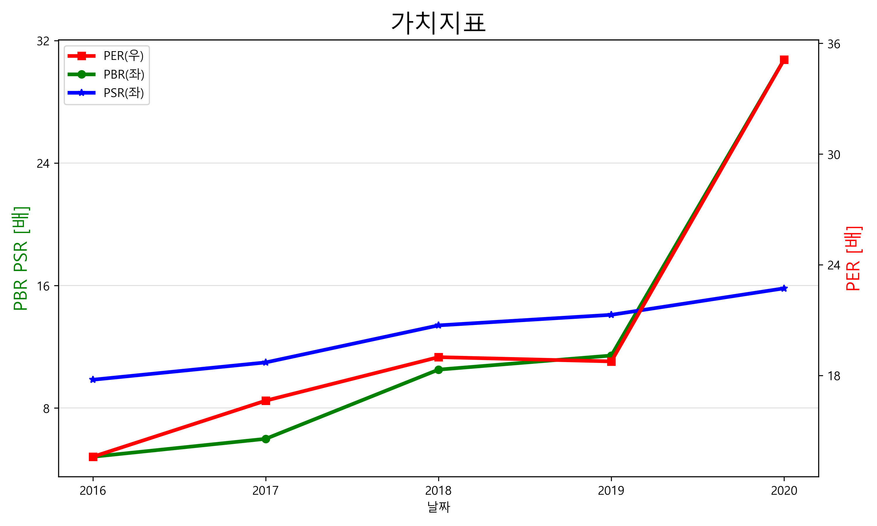 애플의 PER, PBR, PSR 그래프입니다.