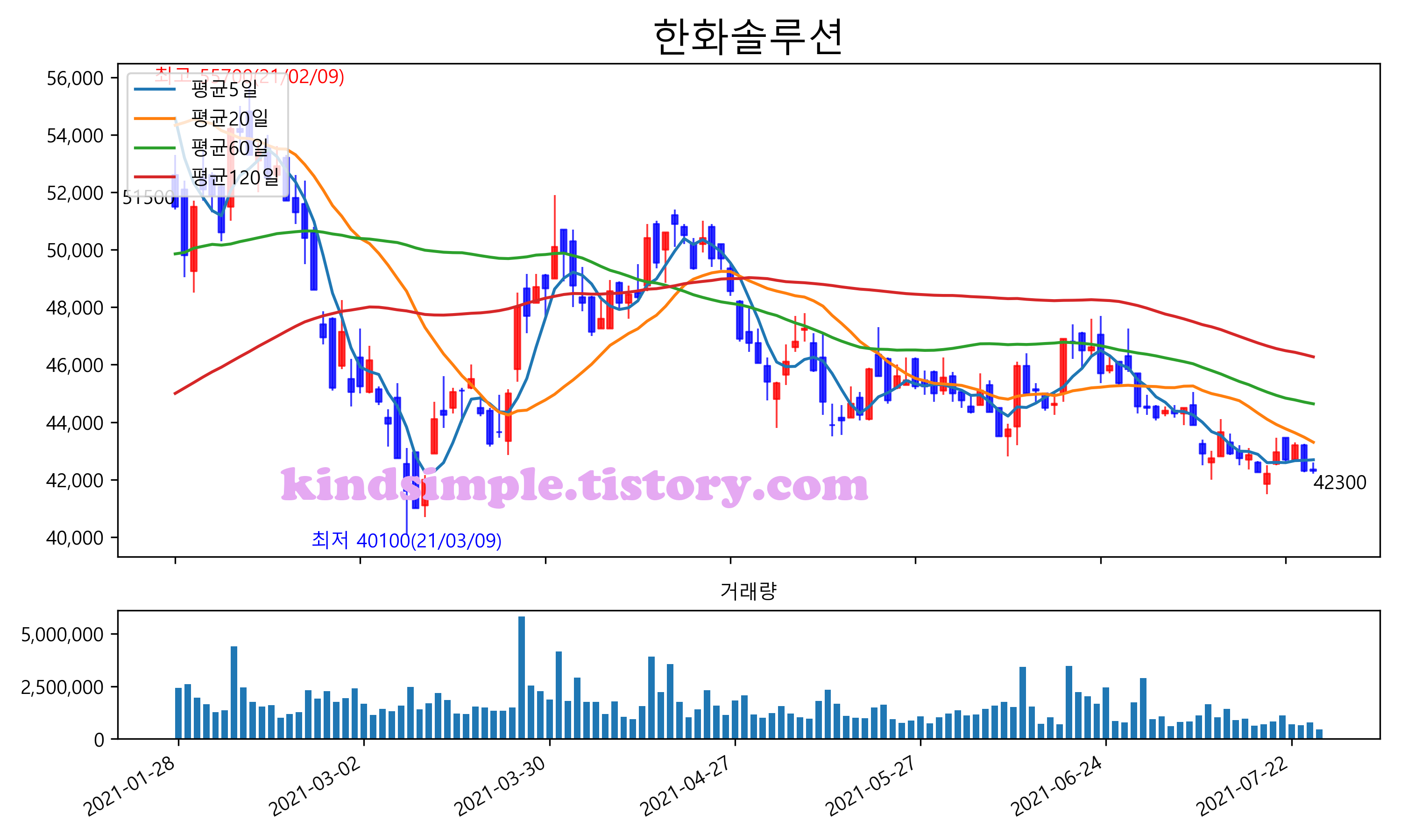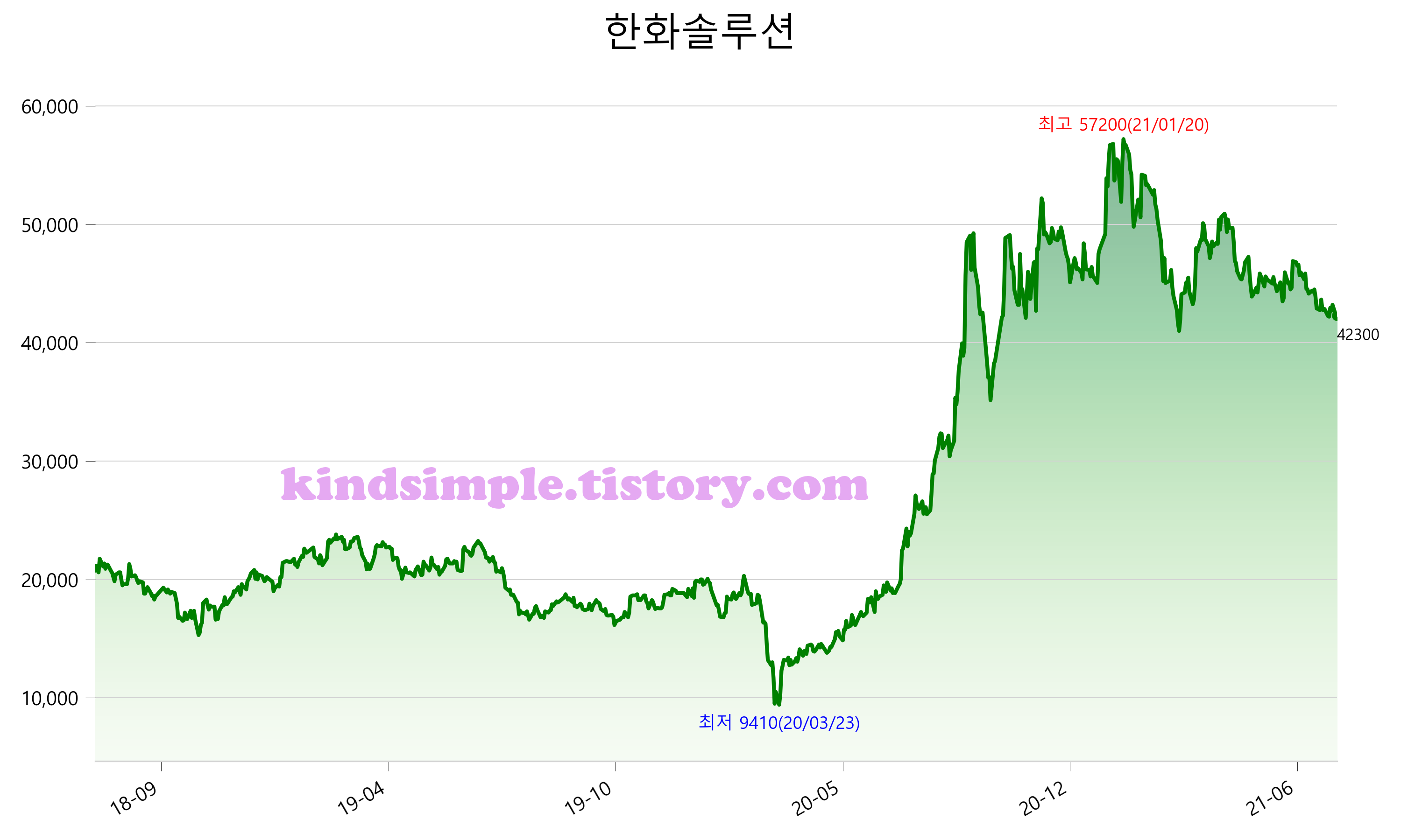 7월 27일 기준 주가는 42,300원 입니다. 아래는 최근 3년간의 주가흐름입니다.