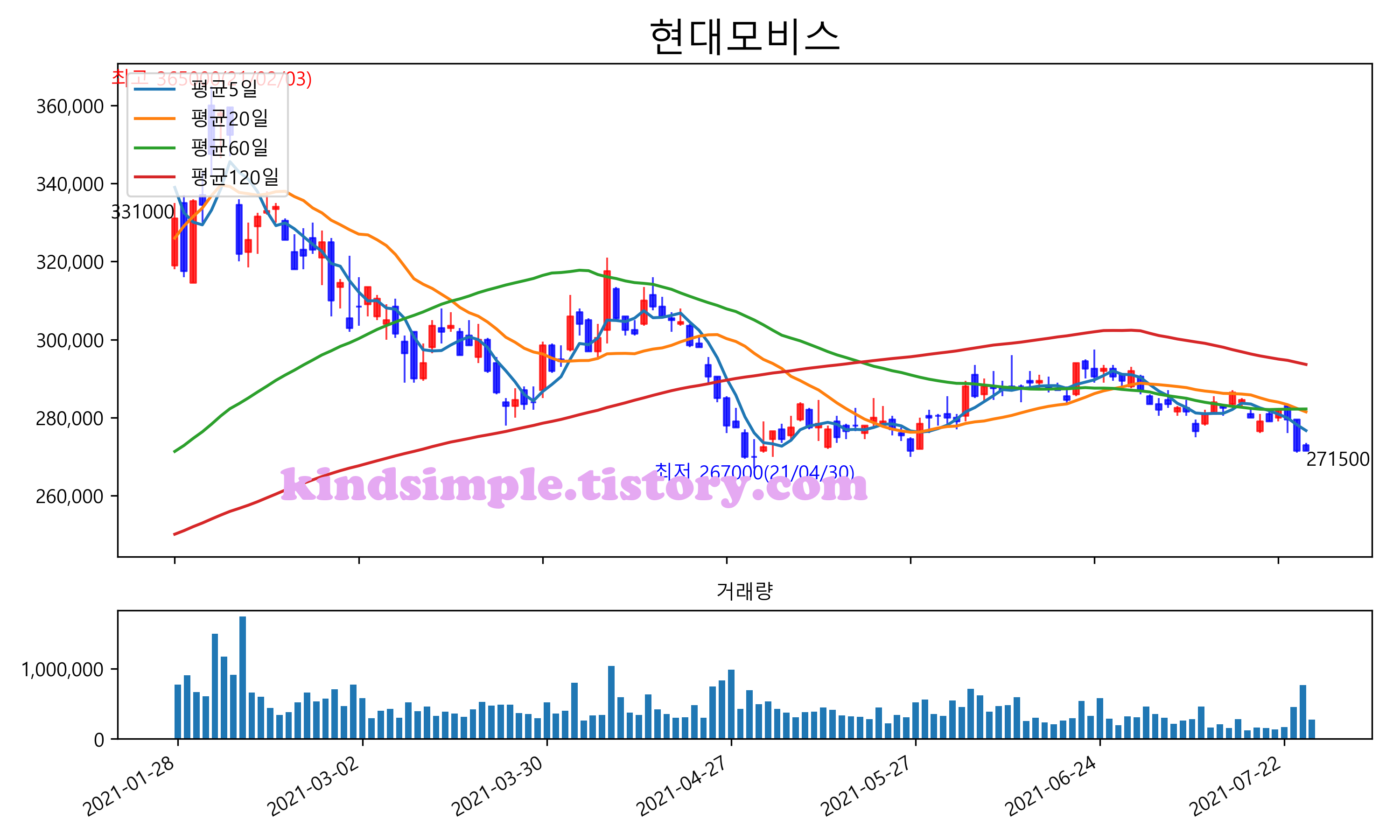 최근 6개월간 캔들차트 및 이동평균선입니다.