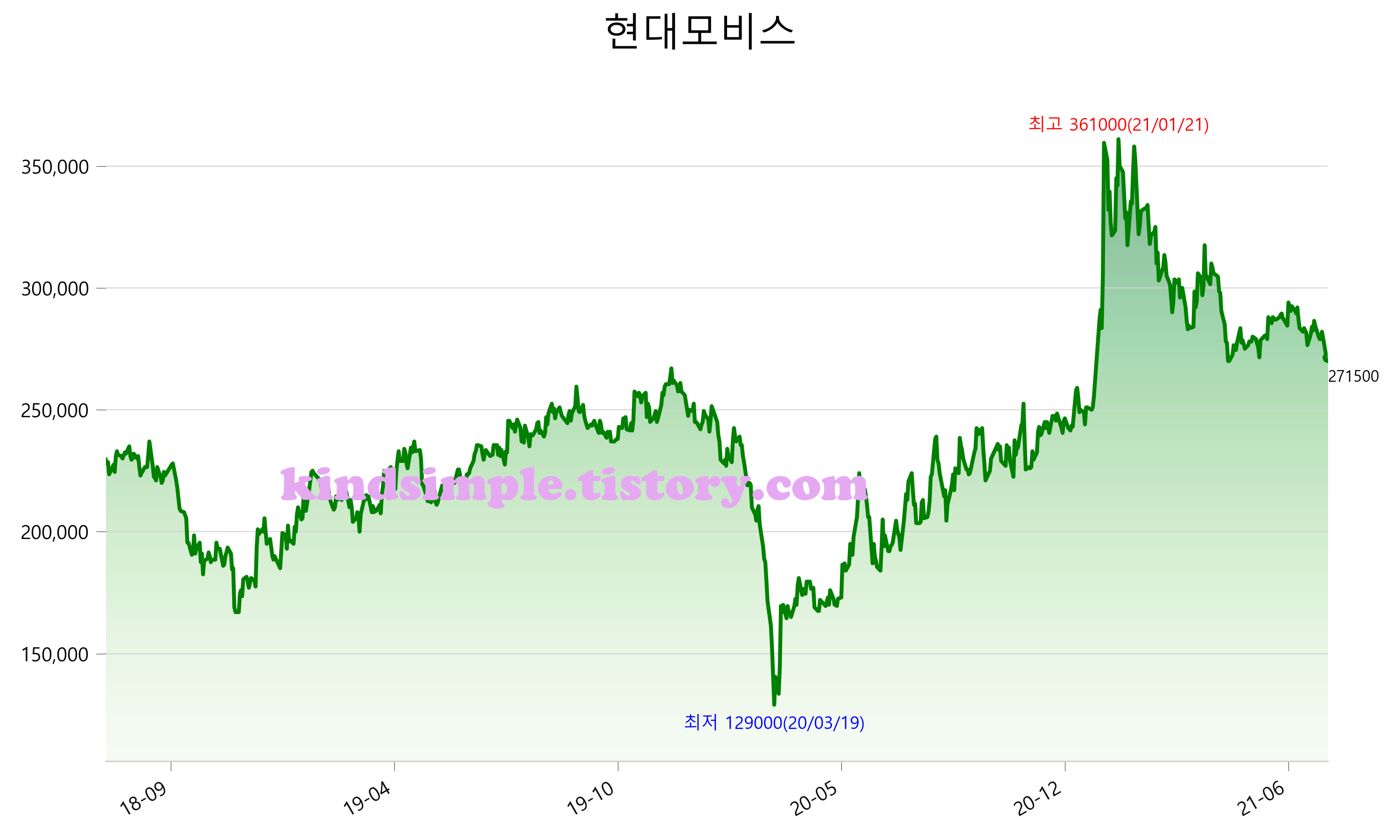 7월 27일 기준 주가는 271,500원 입니다. 아래는 최근 3년간의 주가흐름입니다.